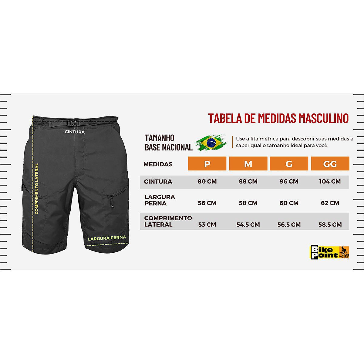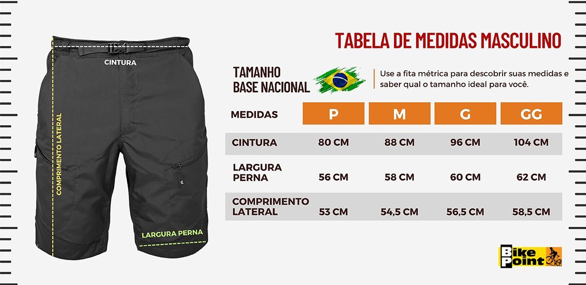 Tamanho / Cintura / Largura Perna / Comprimento Lateral