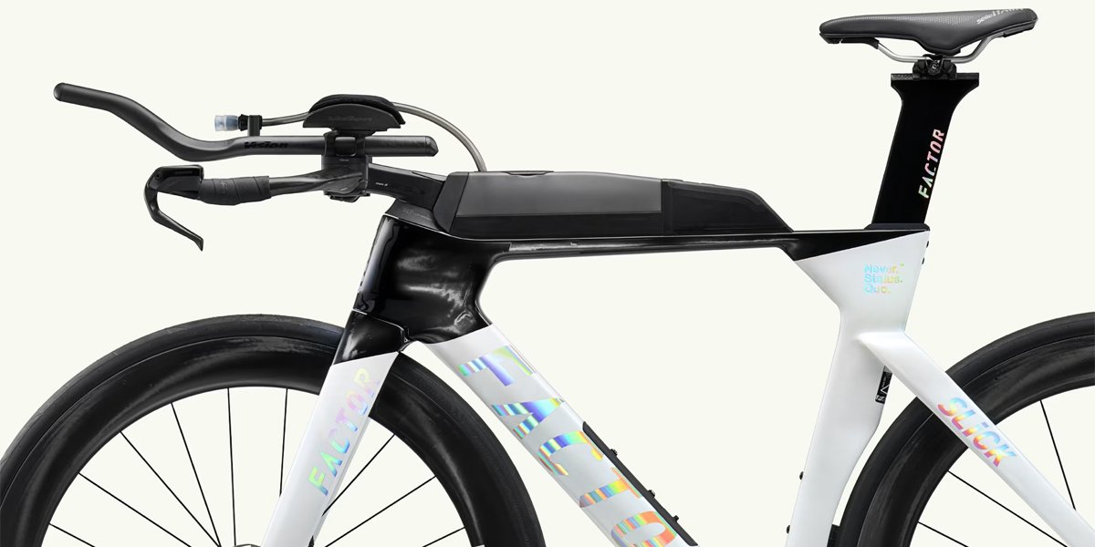 A Factor Slick é uma bicicleta projetada especificamente para triathlon, oferecendo um equilíbrio entre aerodinâmica superior e praticidade funcional. Com um quadro em carbono, entrega eficiência, estabilidade e rendimento superior em provas de média e longa distância. Seu design incorpora soluções inteligentes de integração que permitem o transporte de itens essenciais durante a prova, além de um quadro com perfis aerodinâmicos que reduzem a resistência ao ar e melhoram o desempenho global do atleta.
