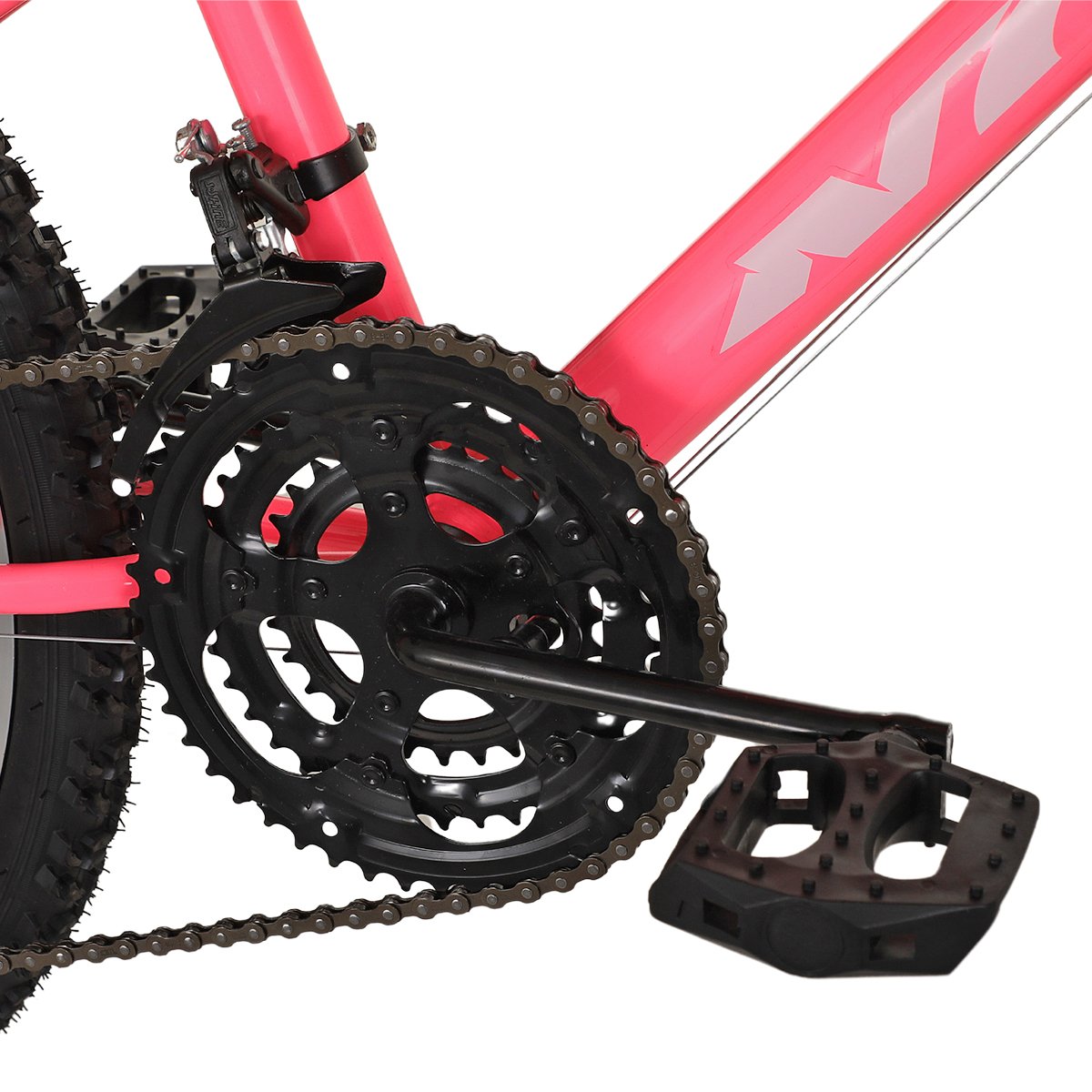 Observação: A tonalidade do quadro da bicicleta é um rosa forte e fluorescente, as imagens podem não definir com extrema exatidão e fidelidade sua cor.