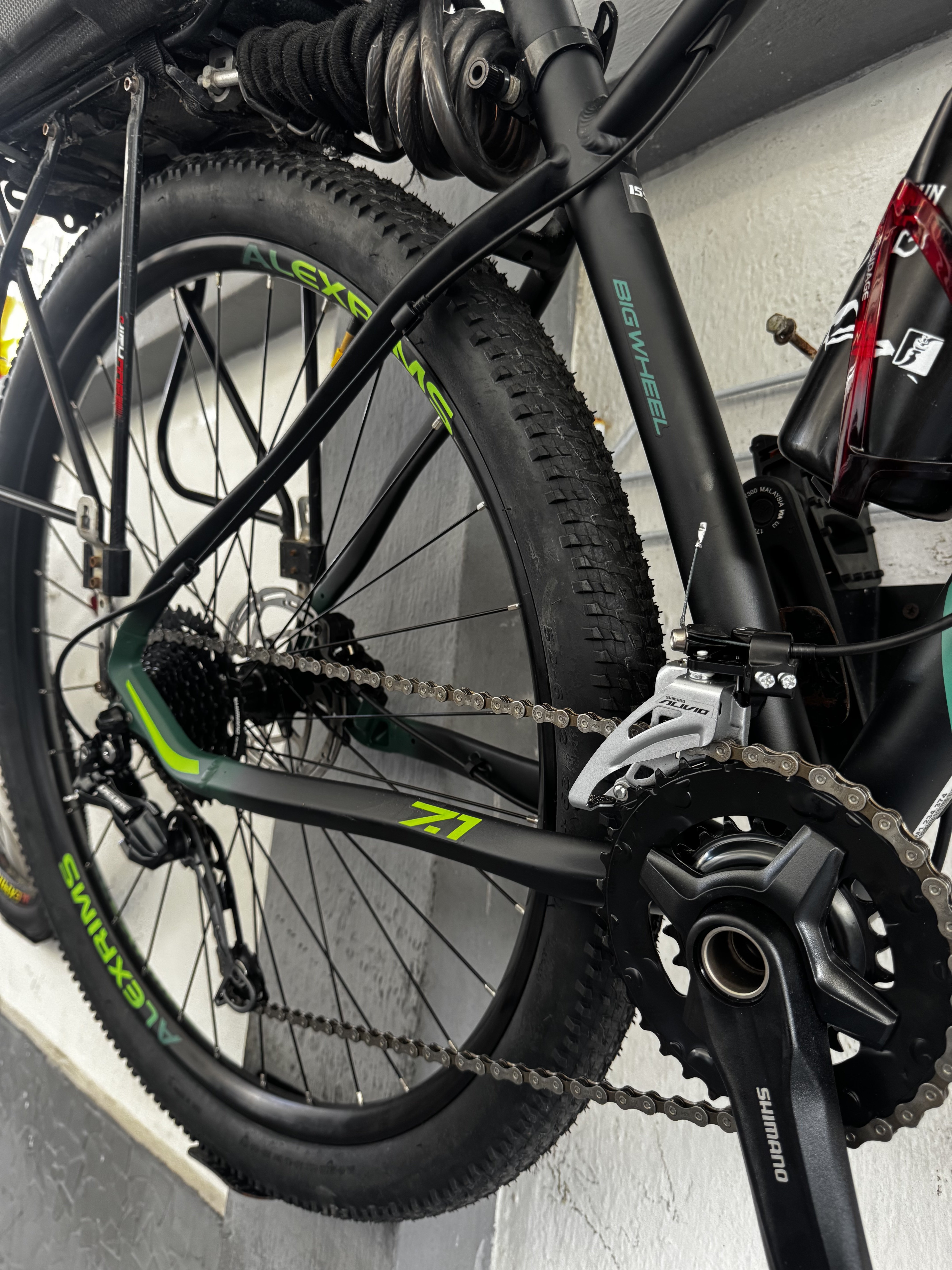 O quadro de alumínio é leve, e foi projetado com foco no conforto do ciclista, oferecendo uma posição de pilotagem mais ergonômica que reduz a fadiga em pedais mais longos. O design da Big Wheel 7.1 Deore é marcado por linhas fluidas e modernas, complementadas pela elegância da cor preta fosca. Seu visual imponente transmite uma sensação de força e agilidade, destacando-se tanto nas trilhas quanto nas ruas da cidade.