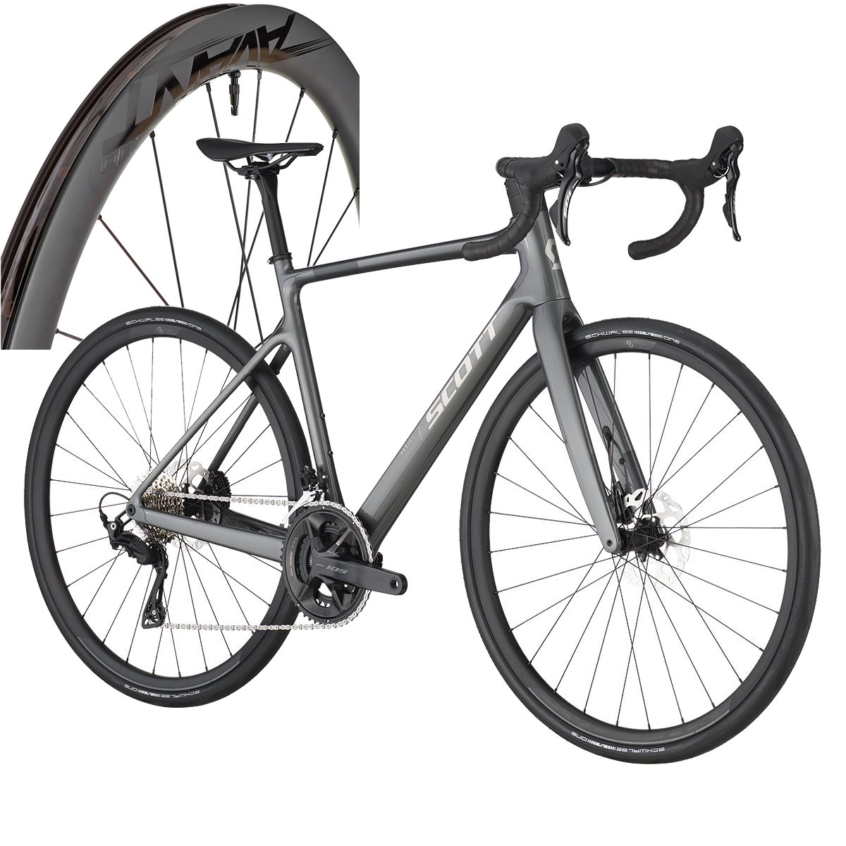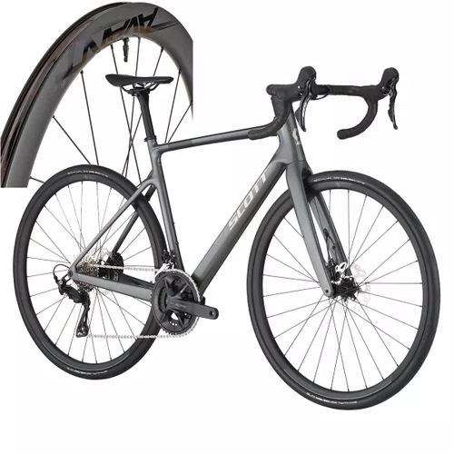 Bicicleta Scott Addict 50 105Cor: CINZA Tamanho: XXL/61Roda de Bicicleta Elitewheels Avant 50 Disc Carbon Tubeless HGCor: PRETO Tamanho: U - Garantia: Garantia de cinco anos para o quadro, o período de garantia é reduzido para três anos, se a bicicleta SCOTT não for sujeita a uma revisão pelo menos uma vez por ano por um concessionário SCOTT autorizado. 3 meses de garantia para demais peças, componentes e acessórios.