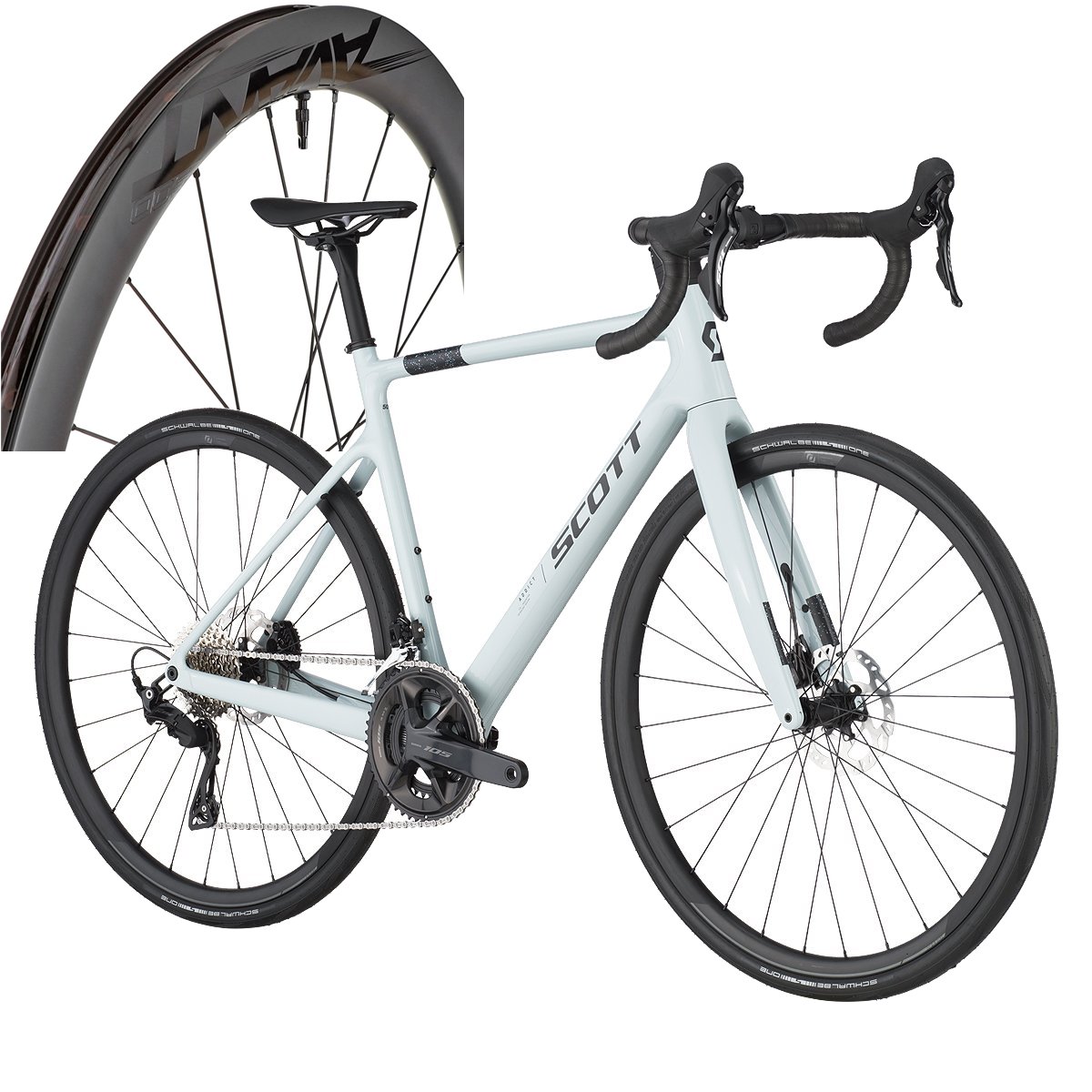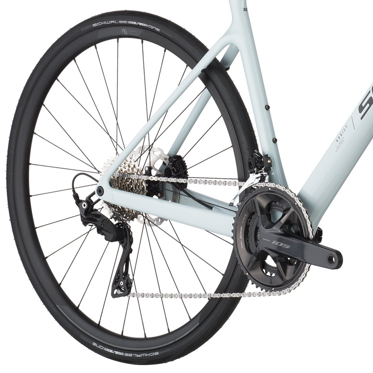 A Addict 50 vem equipada com rodas Syncros RP2.0 Disc, leves e resistentes, que garantem uma rolagem eficiente e confiável. Os pneus Schwalbe ONE Fold 700x32C oferecem excelente aderência e durabilidade para enfrentar diferentes tipos de terreno.