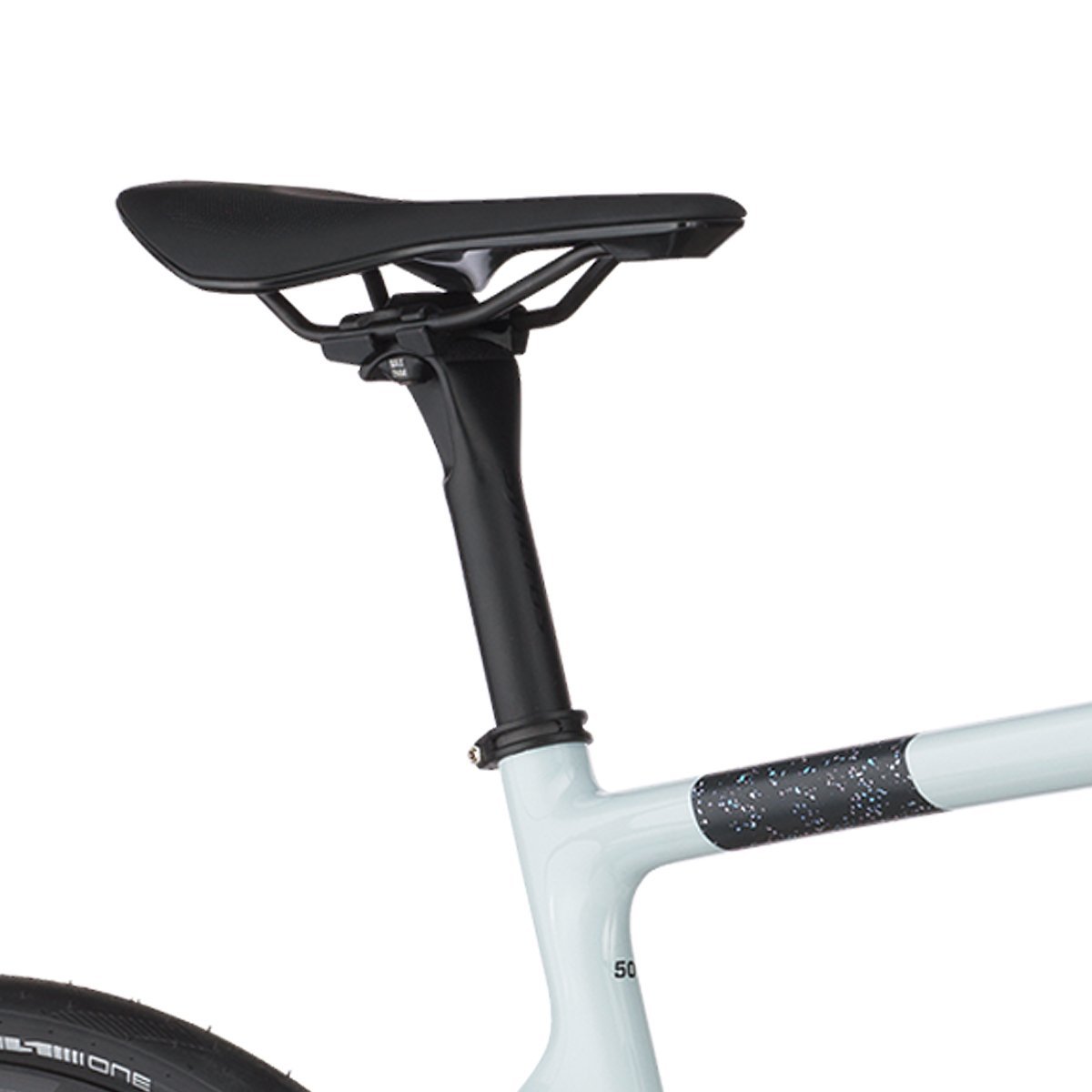 O quadro da Addict 50 apresenta uma geometria menos voltada para corridas e mais focada em resistência, proporcionando uma posição de pilotagem mais confortável para longos percursos. A construção em carbono HMF garante durabilidade e eficiência na transferência de potência.