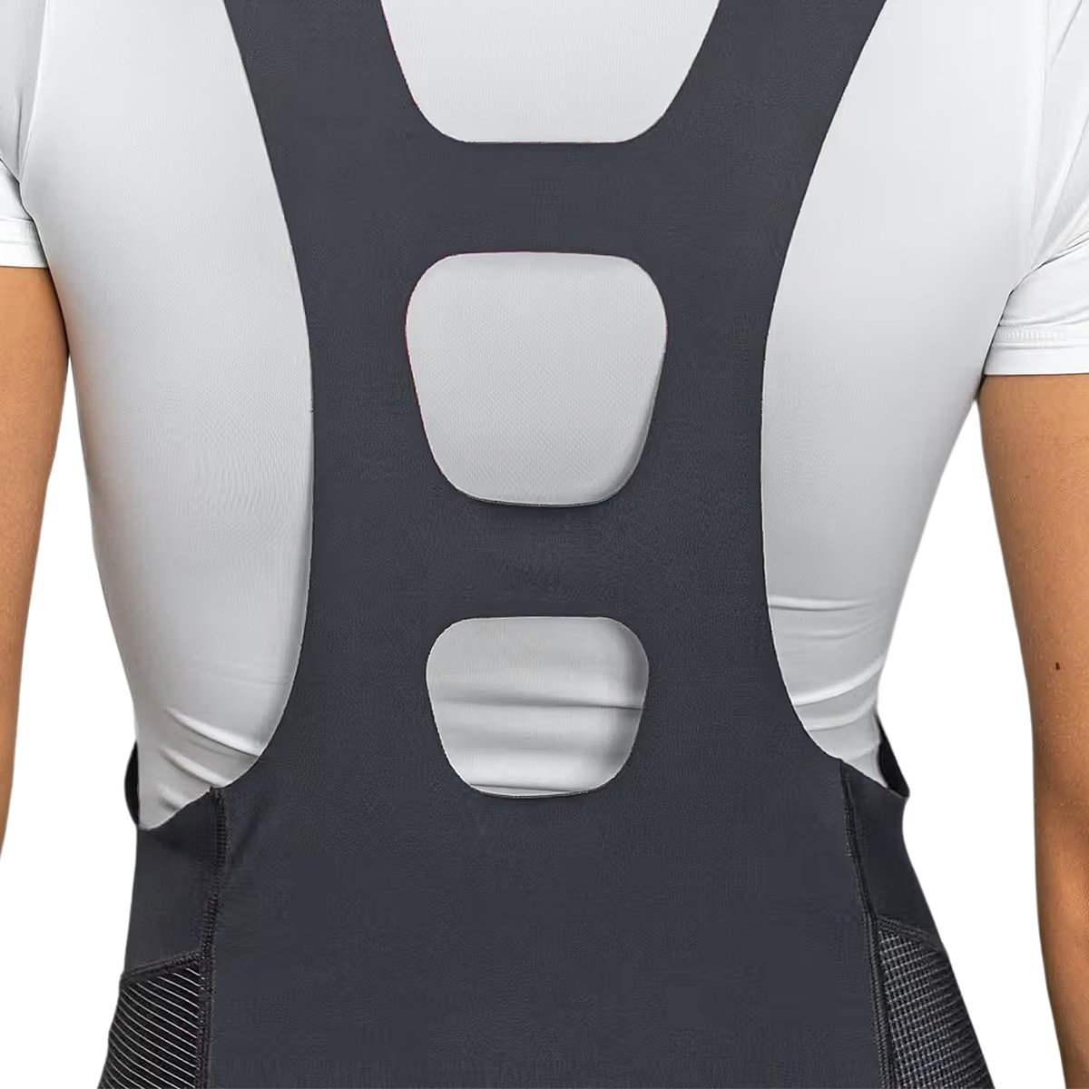 Corte do Bretelle: Ribana elástica com modelagem ergonômica curvada para acompanhar posição sobre a bike
