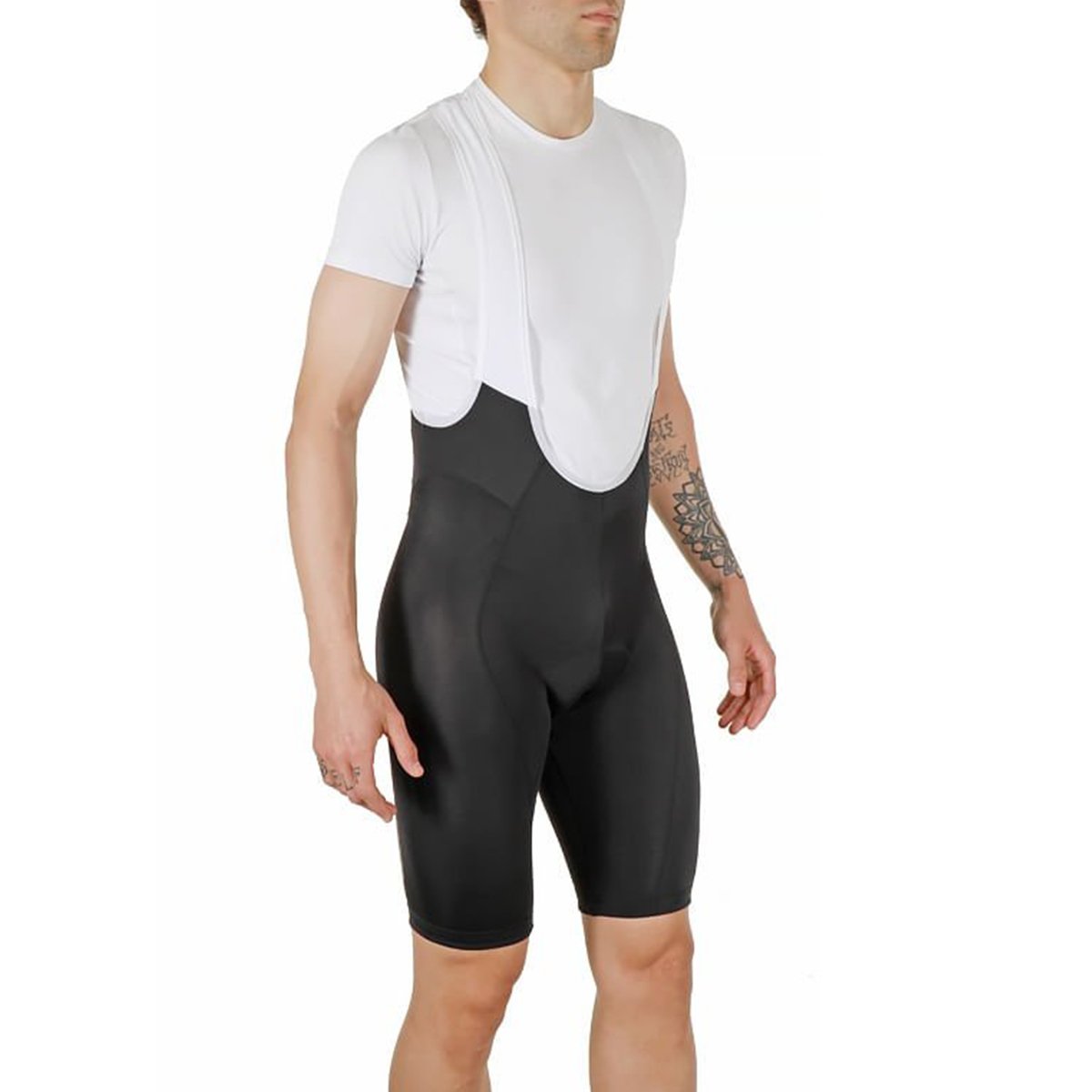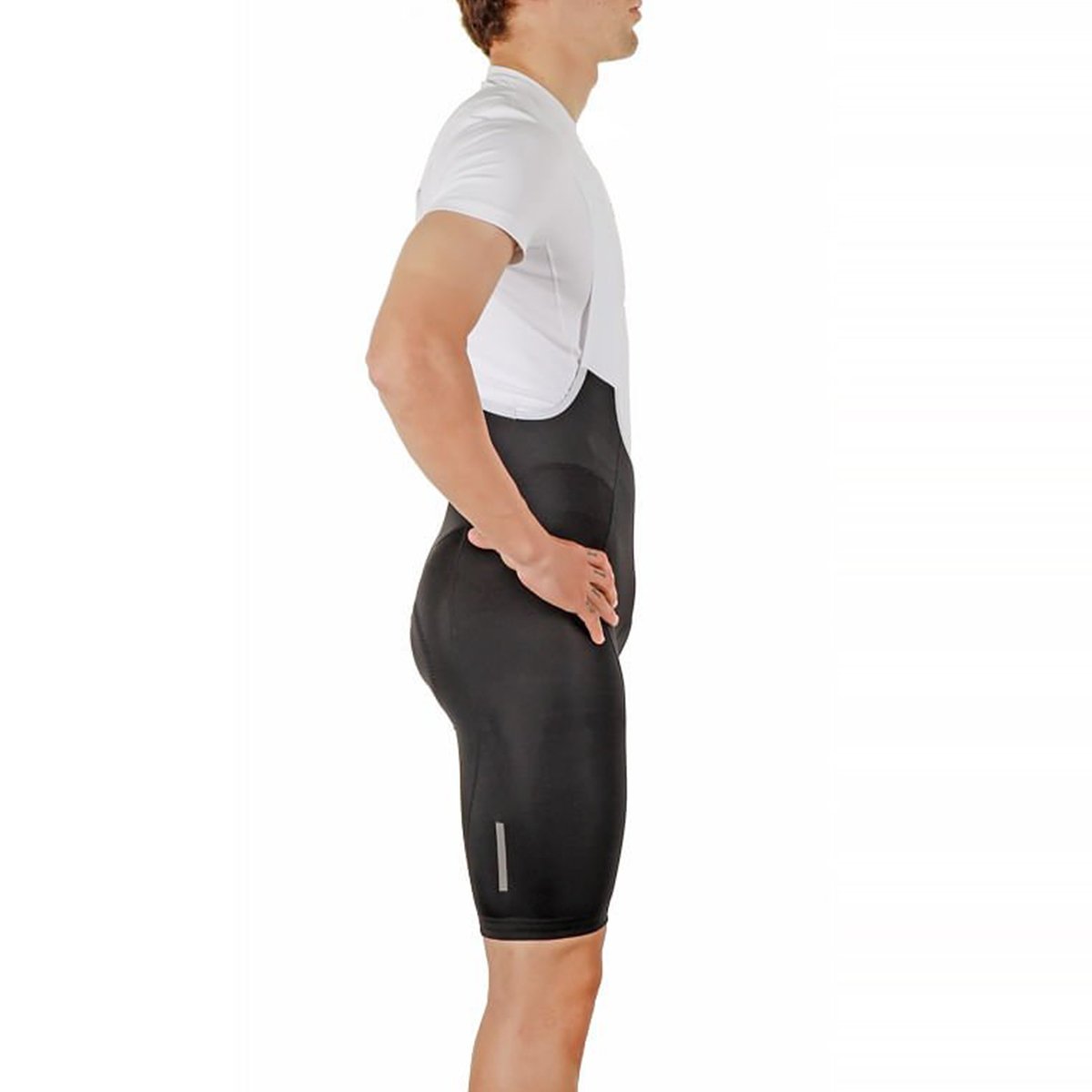 Detalhes Refletivos e Segurança: Os detalhes refletivos aumentam sua visibilidade, tornando os pedais noturnos mais seguros. Além disso, as faixas elásticas com silicone nas coxas mantêm o bretelle no lugar, mesmo em alta rotação.