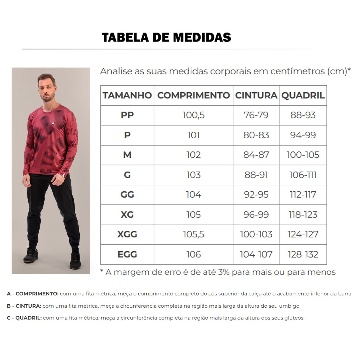 Tipo de modelagem: Comfort (caimento mais solto ao corpo)