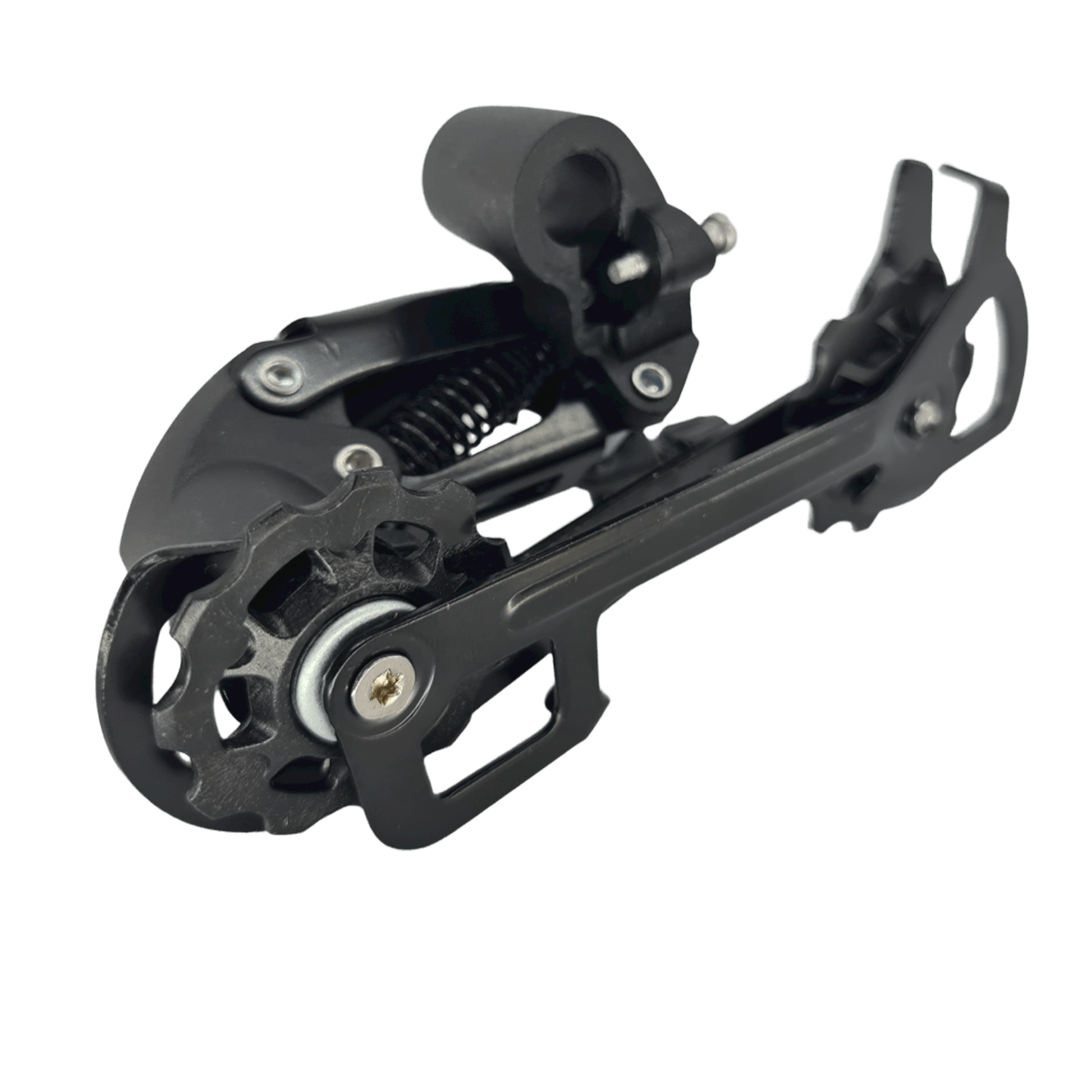 Este câmbio foi desenvolvido para garantir trocas estáveis e confiáveis nas 7 marchas, mesmo sob carga. O cage longo permite ótimo ajuste da corrente, mesmo com cassetes maiores. Sua estrutura em aço com detalhes em resina oferece o equilíbrio certo entre resistência e leveza. Um componente que atende bem ciclistas que buscam confiabilidade no uso diário, seja para passeio, treino ou deslocamento urbano.