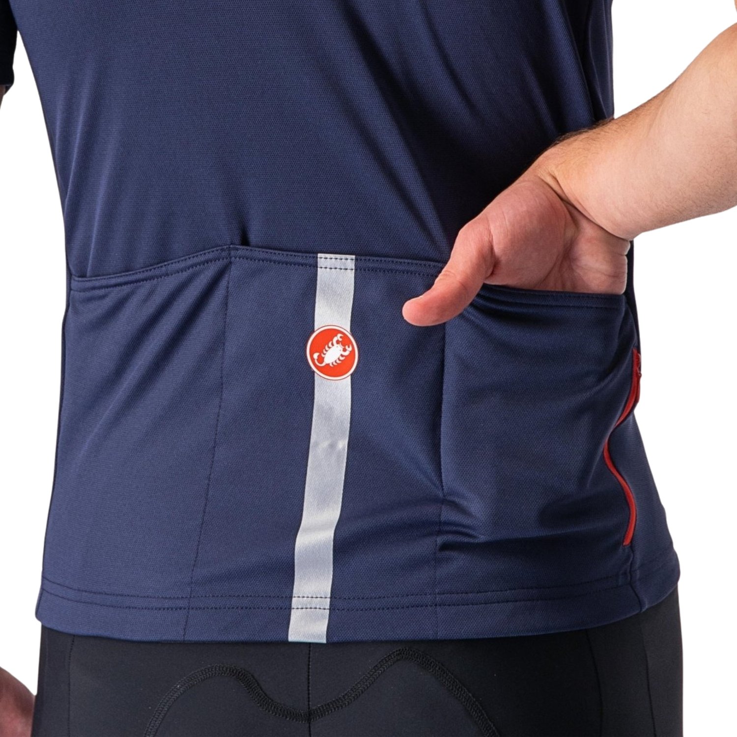 A Castelli Classifica foi feita para ciclistas que valorizam o prazer de pedalar com estilo e desempenho equilibrado. Seu tecido micro-piqué completamente em poliéster garante toque suave e excelente respirabilidade, ideal para treinos longos e passeios em dias quentes.