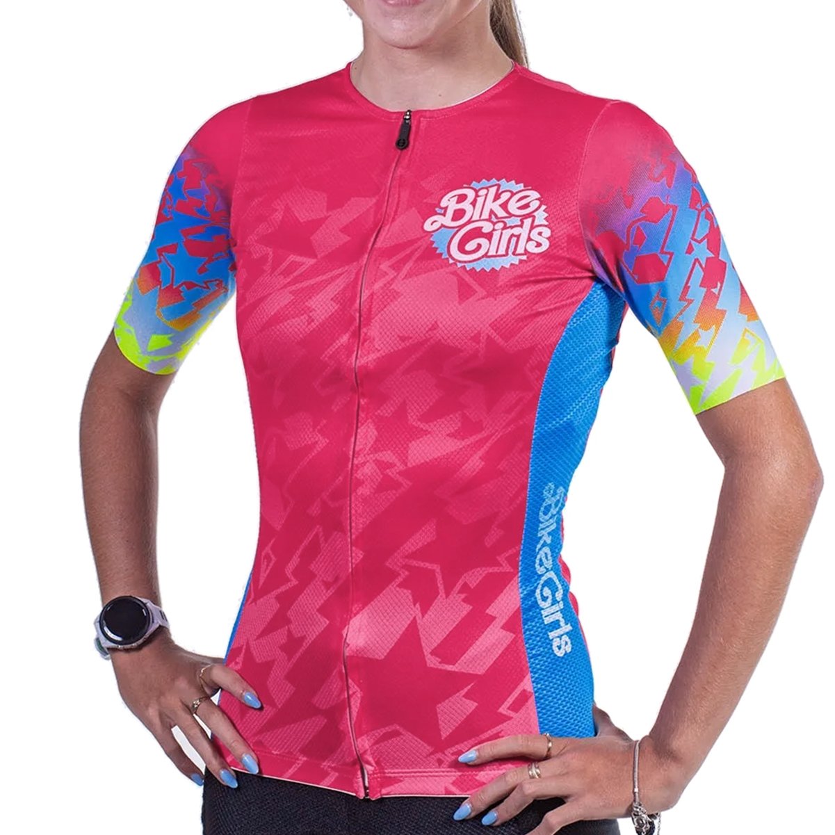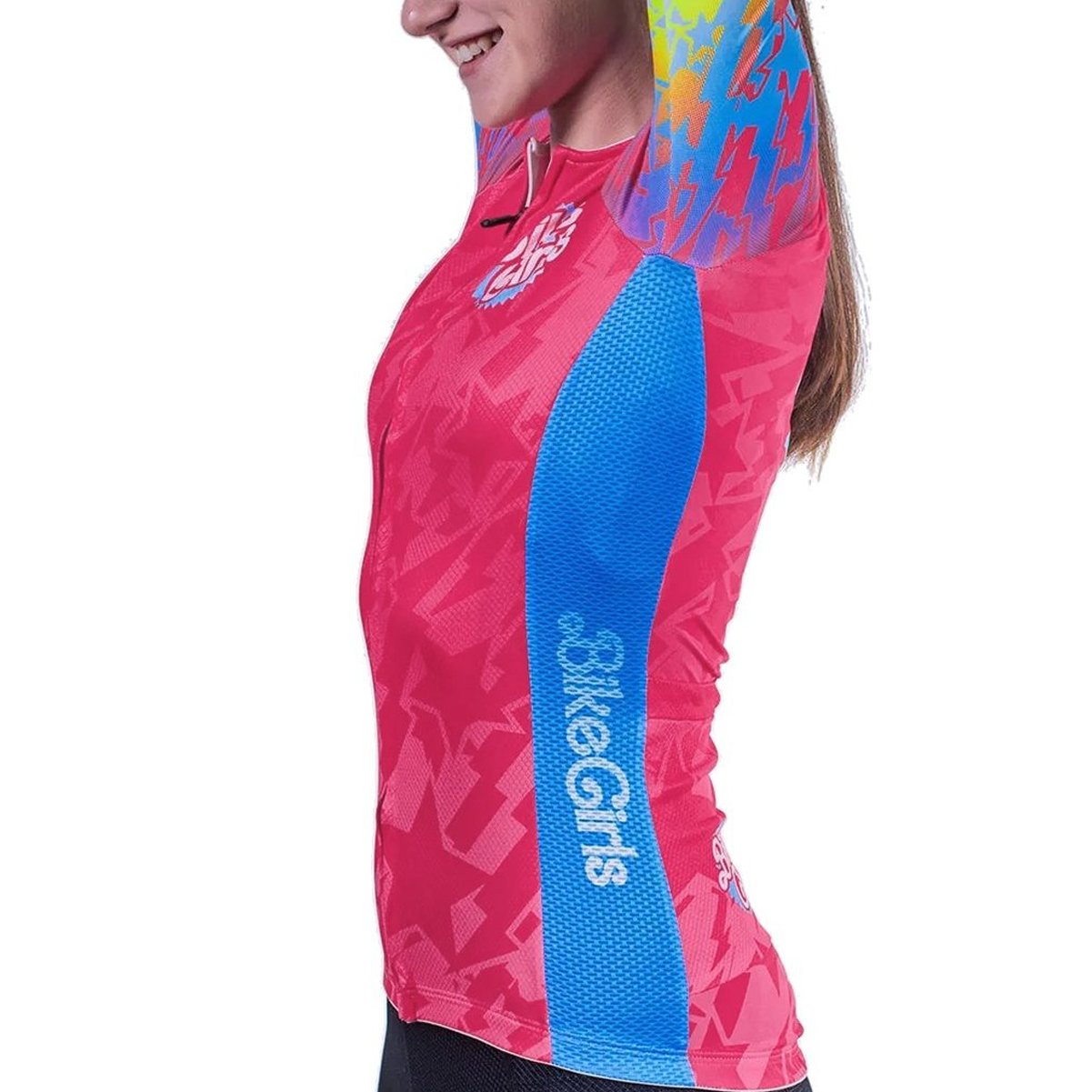 A modelagem específica para o corpo feminino oferece um ajuste preciso e ergonômico, garantindo liberdade de movimento e minimizando o atrito durante o pedal. Além disso, possui costuras planas que reduzem o risco de irritações e proporcionam um contato suave com a pele. A parte frontal da camisa apresenta zíper de inteligente que permite uma ventilação personalizada, facilitando também a colocação e a remoção da peça. Os dois bolsos com zíper na parte de trás, oferecem espaço para armazenar pequenos itens essenciais, como chaves, dinheiro ou um lanche energético, enquanto a faixa de silicone na bainha traseira mantém a camisa no lugar, evitando que ela suba durante o pedal.