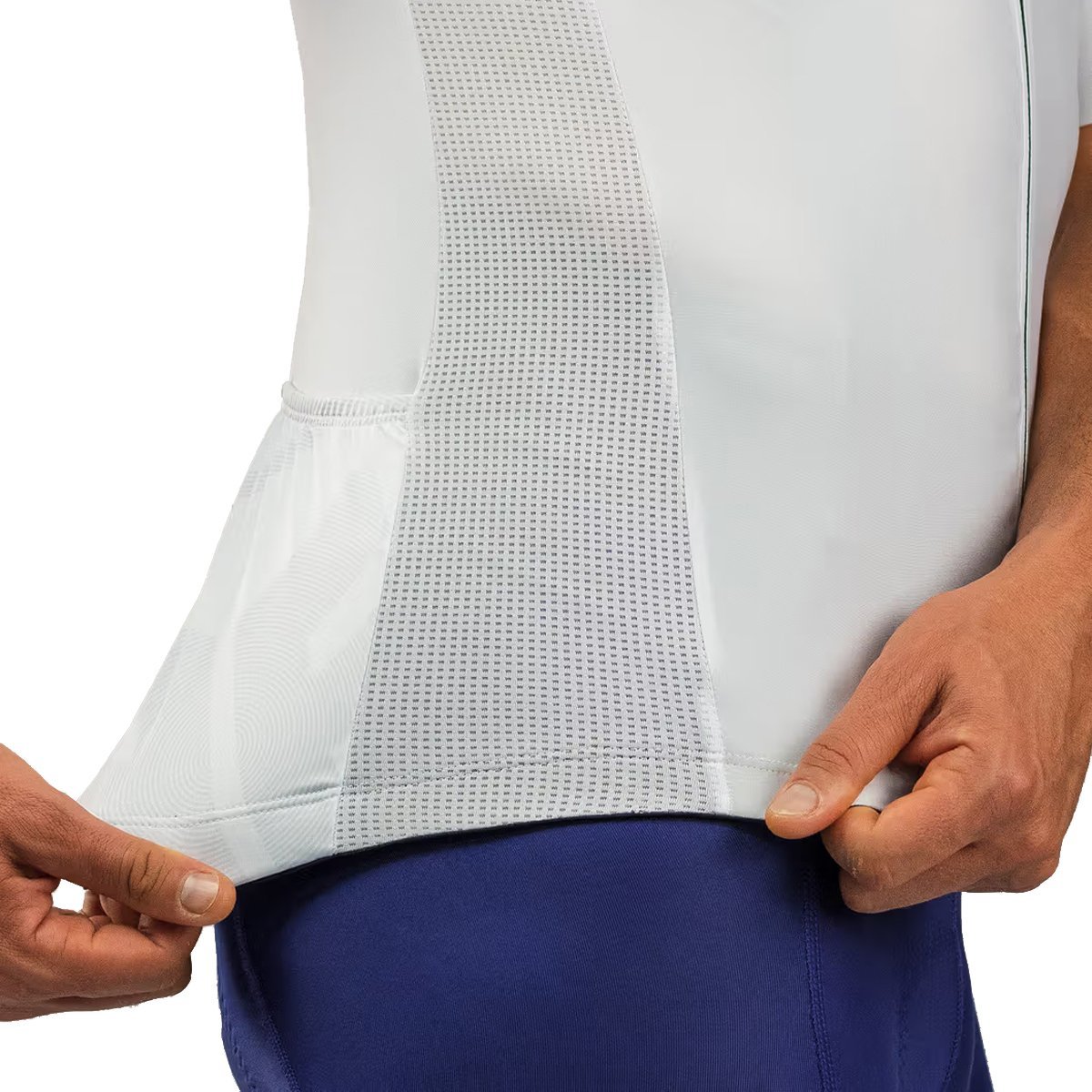 A cor branca é a personificação do estilo atemporal, o que garante visibilidade e estilo ao mesmo tempo. Conta com elasticidade nas costas, apenas no sentido horizontal para suportar peso nos três bolsos com estabilidade, ideais para armazenar pequenos objetos. Possui design com laterais de tecido com micro perfurações e barras elásticas com silicone, garantindo ótima mobilidade. Já o zíper frontal é de comprimento total e invertido, de fácil deslizamento, que facilita a ventilação adicional e torna a camisa fácil de vestir e remover.