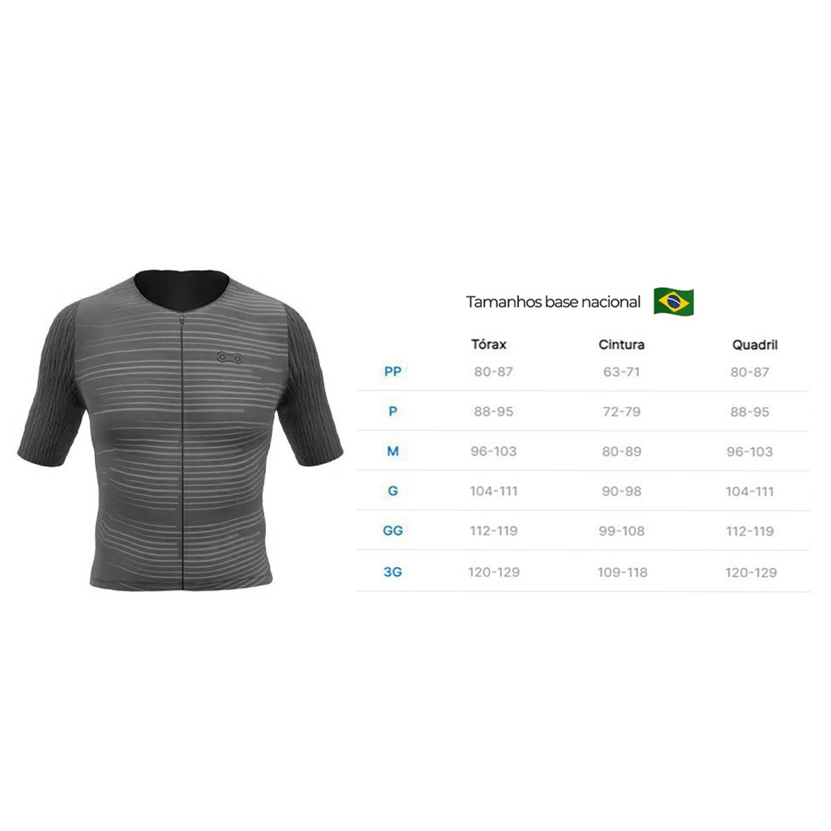 Tipo de modelagem: Fit (caimento justo que favorece a aerodinâmica e melhora o desempenho)
