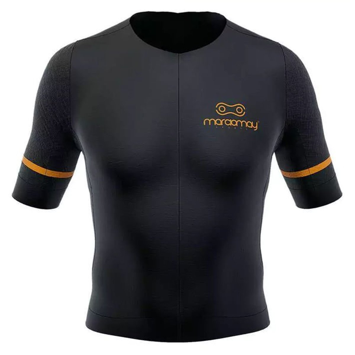A Marcio May sempre buscando entregar produtos de alta qualidade desenvolveu a camisa Pro, com três tipos de tecido sendo frente e costas poliéster Spirit. Com esta textura mais fina e toque macio é indicada especialmente para confecção de roupas esportivas de alto rendimento que necessitam de sublimação. Com sua modelagem fit proporciona conforto e ao mesmo tempo alto rendimento e aerodinâmica.