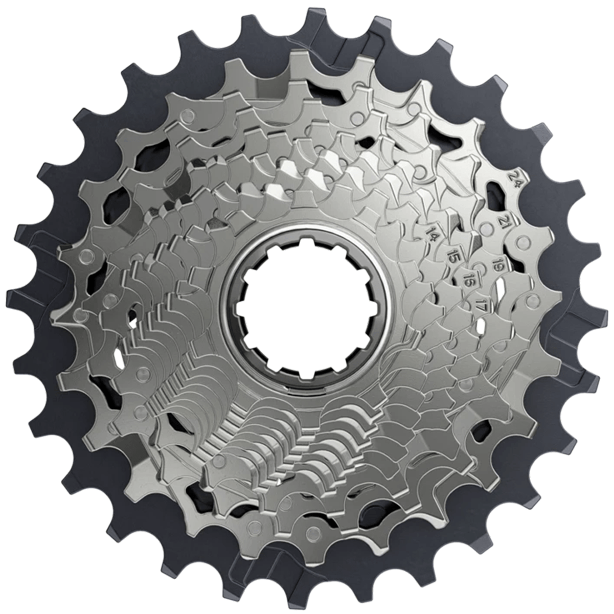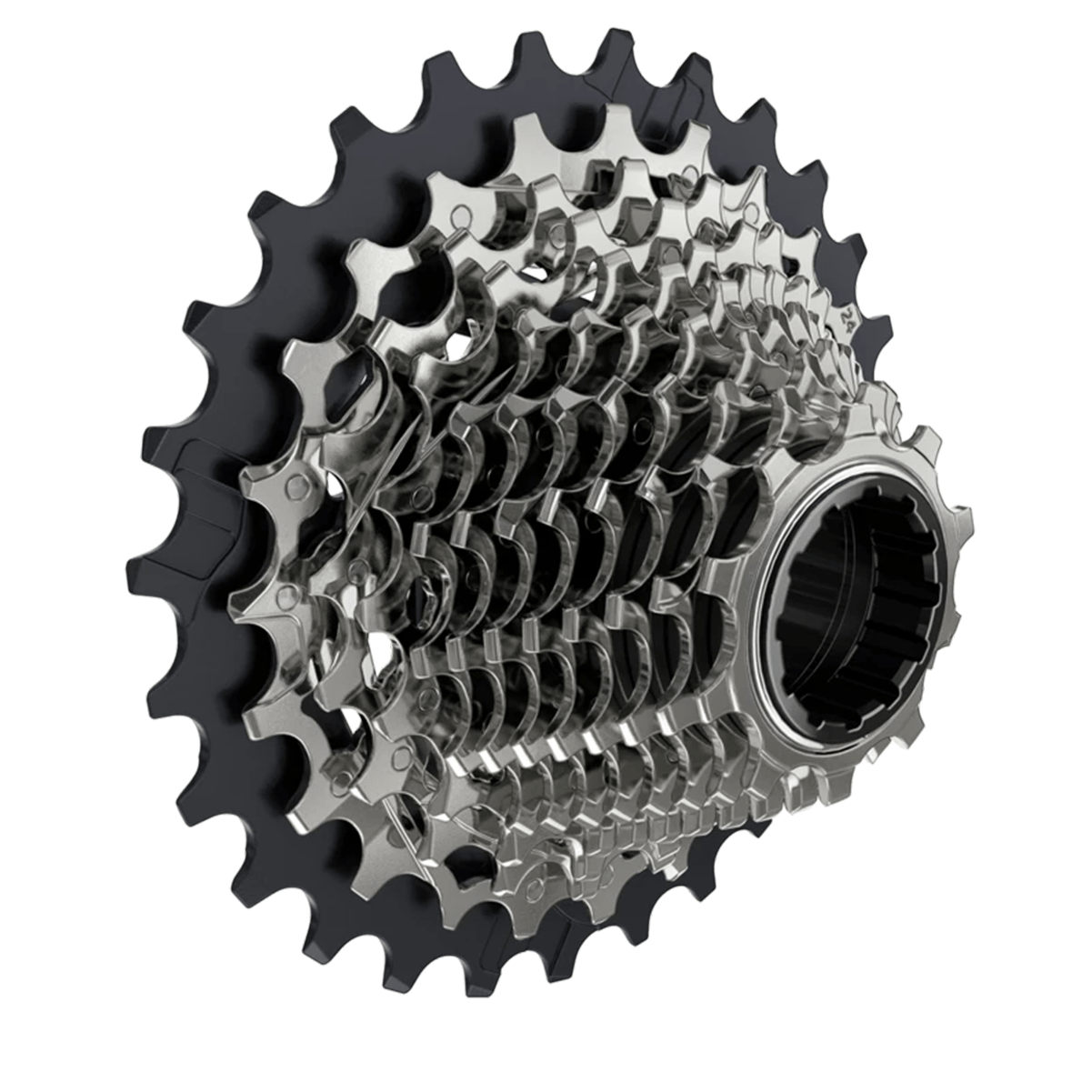Sua construção Mini Cluster combina cogs menores usinados individualmente e cogs maiores fixados por pinos, equilibrando leveza, longa vida útil e rigidez estrutural. Compatível exclusivamente com núcleos XDR, o cassete se integra a sistemas 1x e 2x da linha AXS, funcionando com correntes SRAM Flattop.