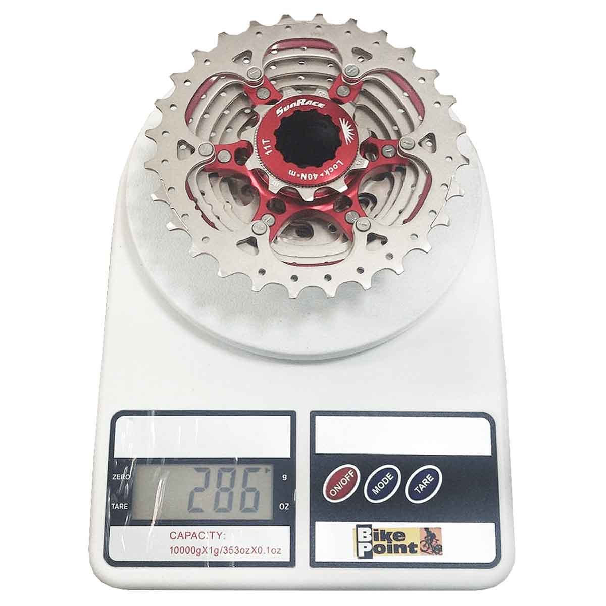 O CSRX1 é um cassete de estrada leve da SunRace com 11 cogs em aço, bem como aranhas e um anel de travamento feito de alumínio. Ele foi equipado com tecnologia Super-Fluid-Drive para mudanças particularmente suaves e possui vários furos para economizar peso.