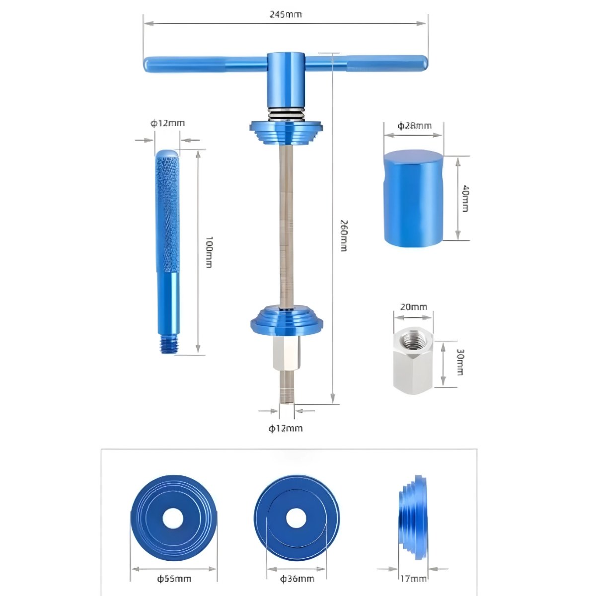 Tipos de Ferramenta: Ferramenta de prensa manual para press-fit (sem encaixe de splines ou roscas)