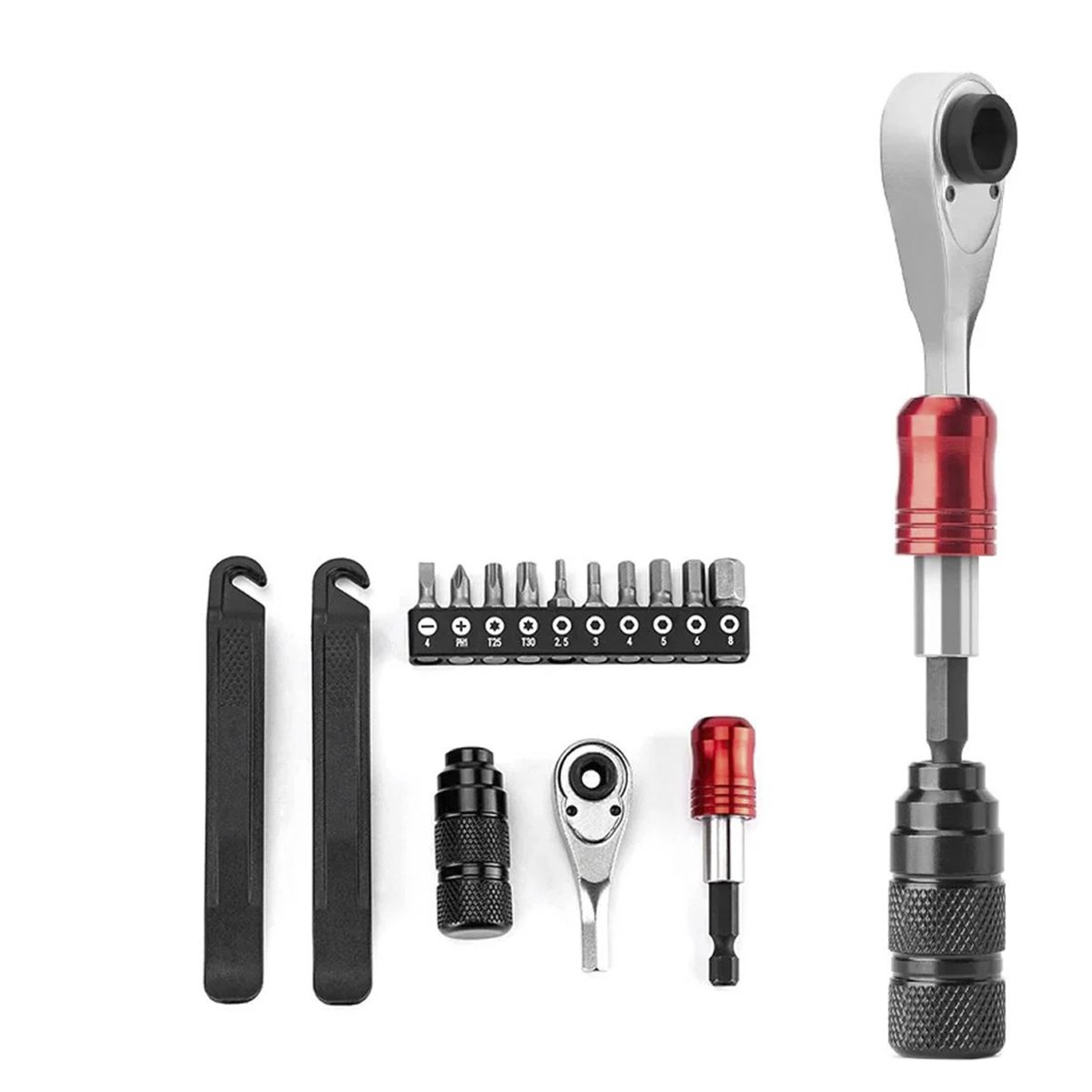 O design inteligente e ergonômico da Chave Rockbros Allen com Catraca Multifunções permite uma pegada firme e confortável, oferecendo excelente torque e acesso rápido, além de Torx T25 e Philips PH2. A catraca integrada proporciona maior precisão e facilidade de uso, otimizando o tempo e o esforço durante os reparos, tornando as manutenções mais rápidas e eficientes. É a ferramenta para bike ideal para ciclistas que buscam eficiência.