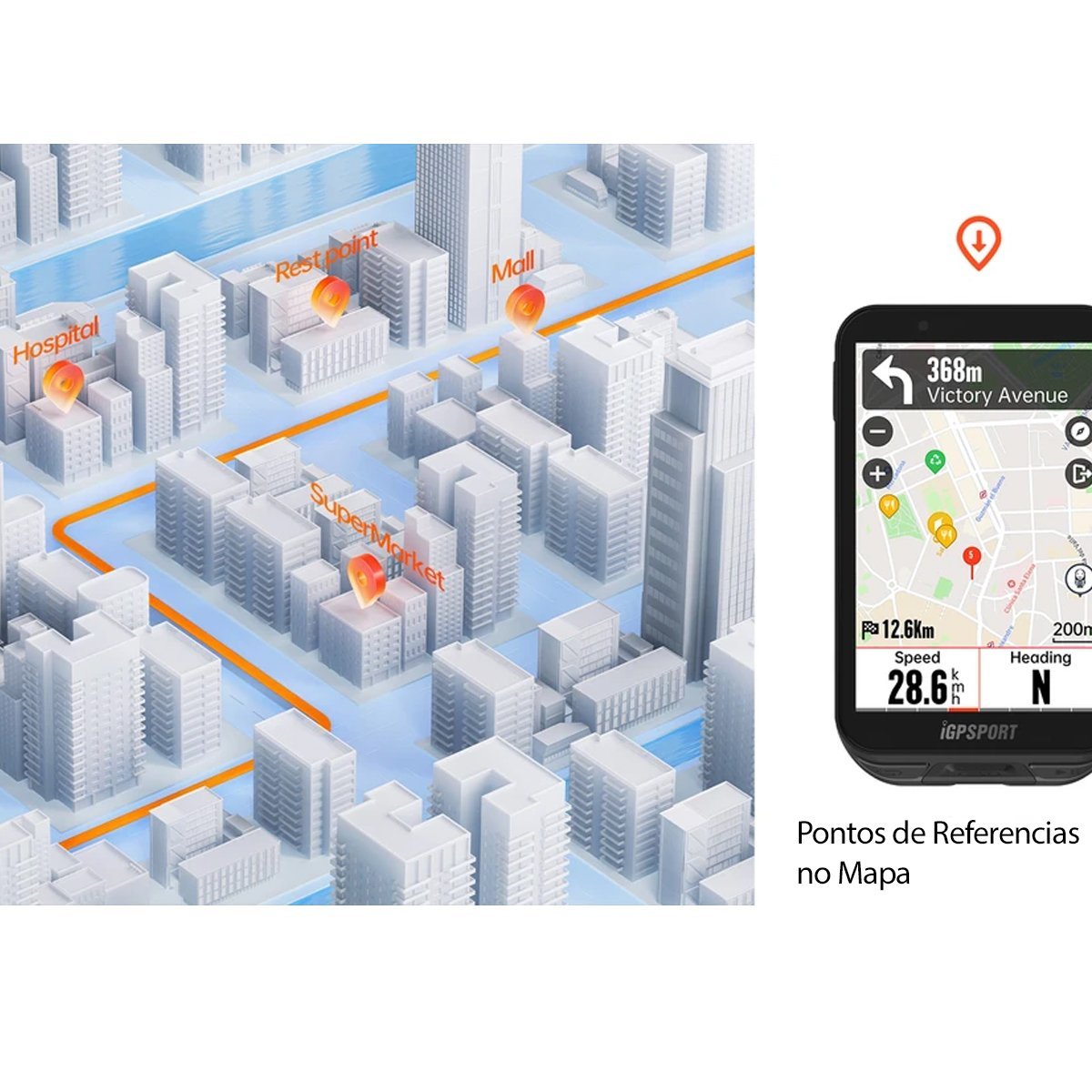 • Mapa com Pontos de Referencias: Conforme o percurso do pedal, ele vai te dizer quanto tempo você precisa para se recuperar, ergue suas energias e voltar para o pedal.