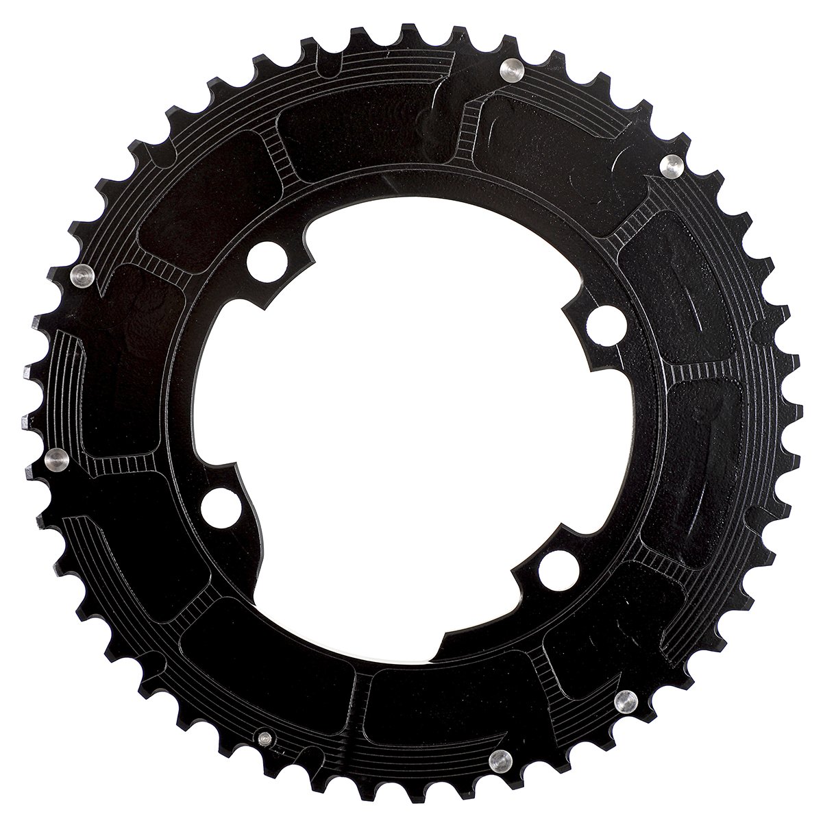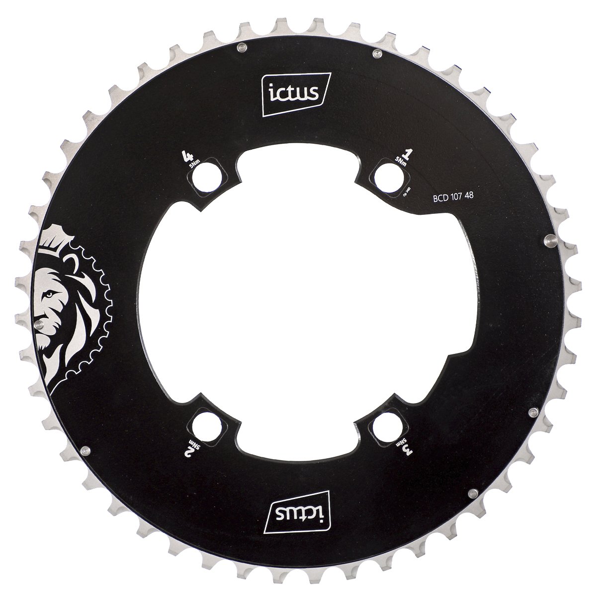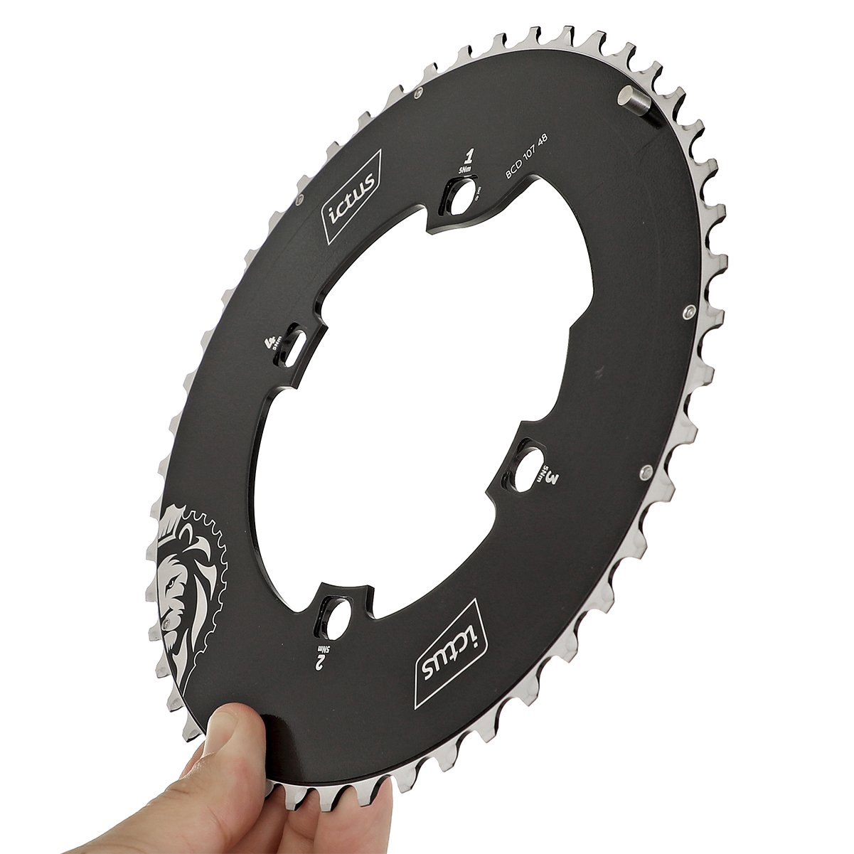 ✅ Fixação 4 furos assimétricos: padrão BCD 107 mm compatível com pedivelas de estrada