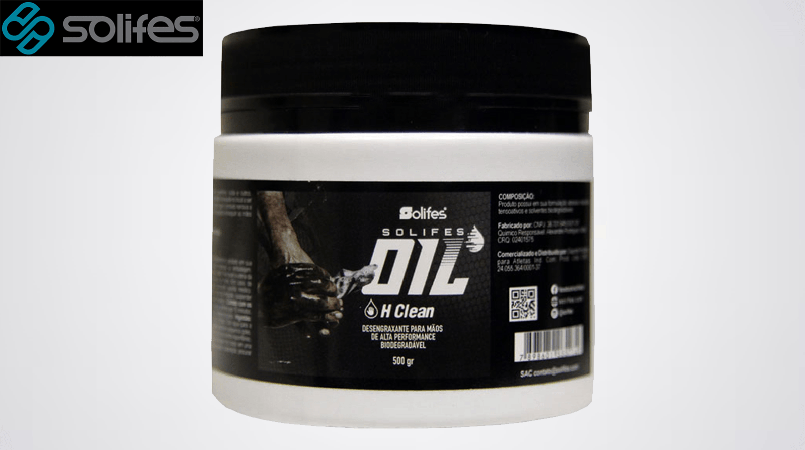 O Desengraxante Solifes Oil H Clean Para Mãos Biodegradável 500g possui em sua formulação abrasivo natura, produtos tensoativos (que possuem atração com óleo) e solventes biodegradáveis. A Solifes é uma empresa brasileira que facilita e desenvolve soluções a atletas de vários esportes, seja no corpo ou em equipamentos. O Desengraxante Solifes Oil H Clean é um produto 100% correto e, sendo biodegradável, pode ser usado de forma ampla para eliminar impurezas e derivados de produtos a base de óleo da pele dos profissionais que realizam manutenção em equipamentos que contenham lubrificantes oleosos.