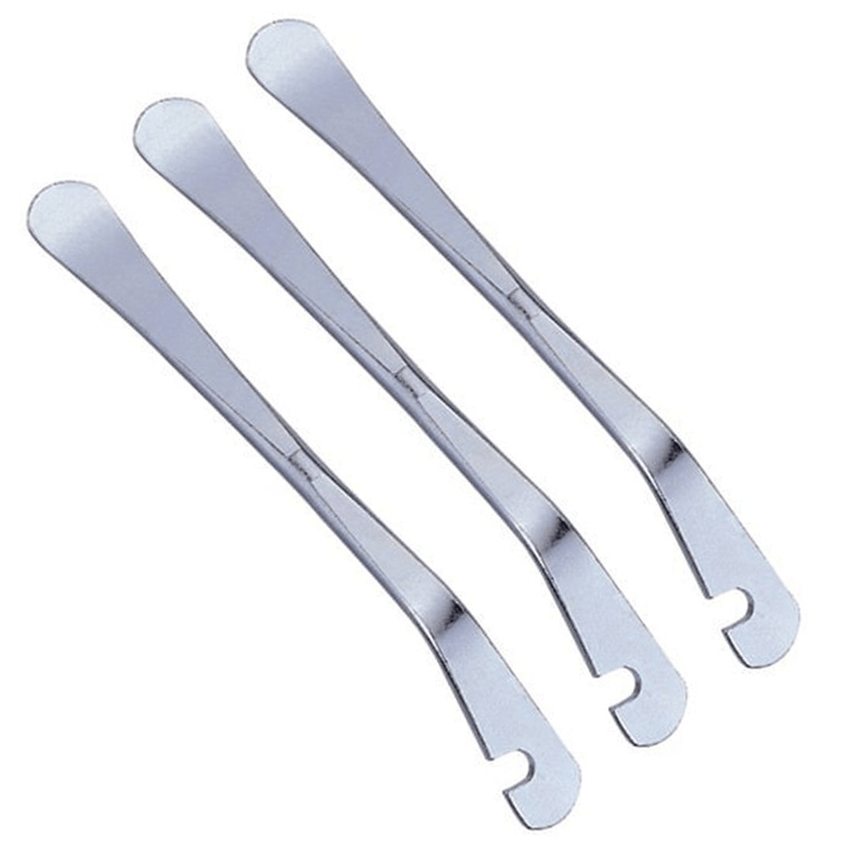 As espátulas de bicicleta Ice Toolz, fabricadas em aço galvanizado, são projetadas para oferecer durabilidade e eficiência na remoção de pneus difíceis. O conjunto contém três espátulas com formato achatado para facilitar a inserção entre o pneu e o aro, e um gancho lateral que permite fixá-las ao raio da roda durante o processo de retirada. A construção em aço galvanizado aumenta a resistência à corrosão, garantindo uma vida útil prolongada, além de proporcionar maior rigidez, evitando deformações durante o uso.