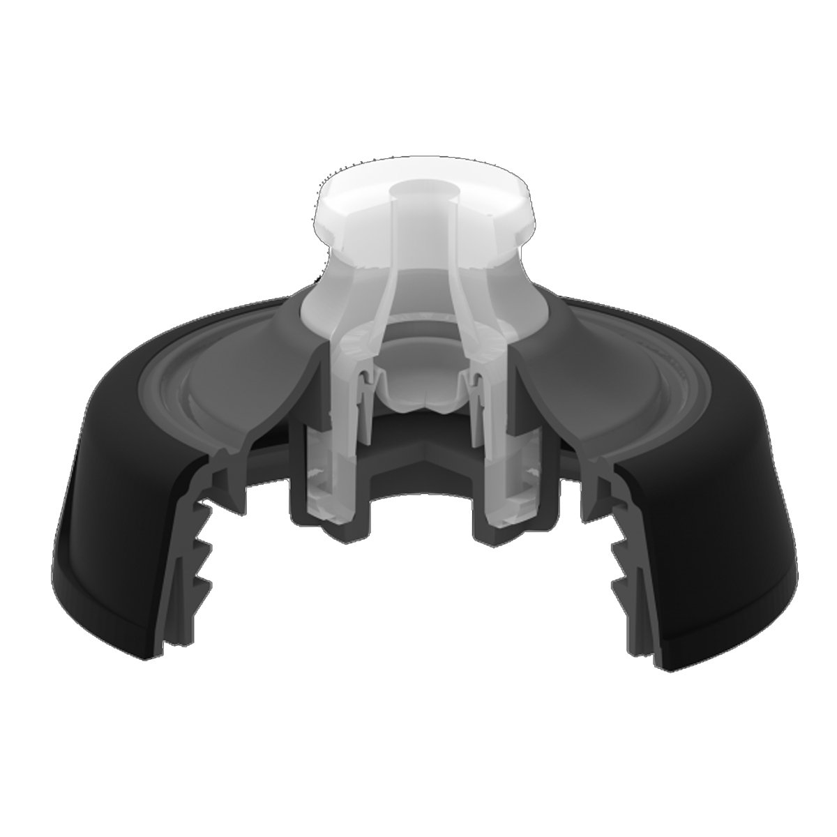 A tampa da garrafa possui uma sobremoldagem que facilita a aderência, garantindo um manuseio seguro e confortável, especialmente durante atividades físicas. O sistema de fechamento duplo, que inclui uma válvula de liberação rápida e um botão de silicone, permite que o usuário controle o fluxo do líquido de maneira uniforme, prevenindo transbordamentos.