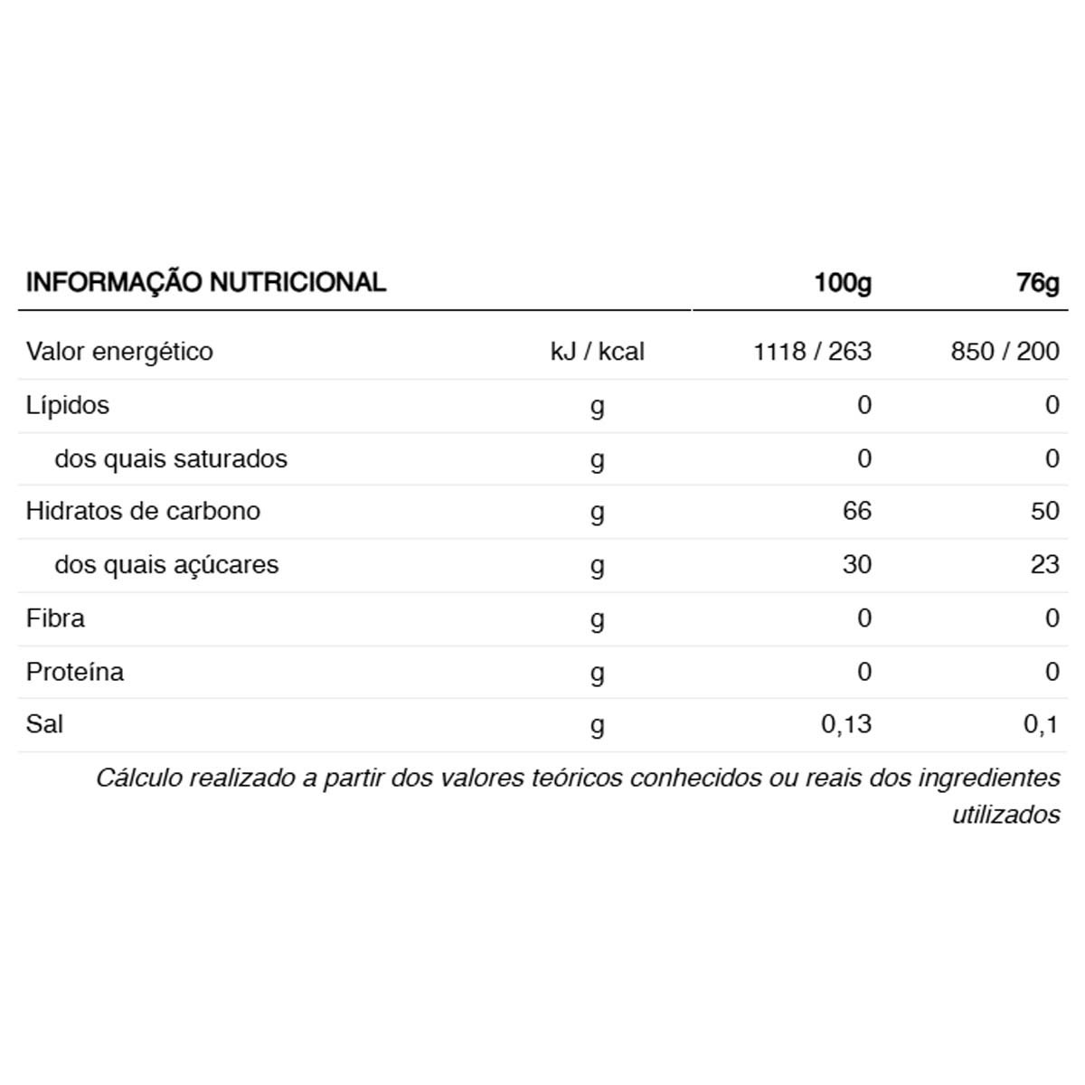 Pode consumir até 2 unidades a cada 60 minutos durante o exercício com aproximadamente 300 ml de água. Mantenha-se sempre hidratado.