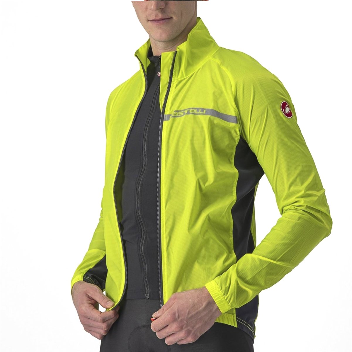 1 unidade - Jaqueta de Ciclismo Corta Vento Castelli Squadra Stretch Amarelo