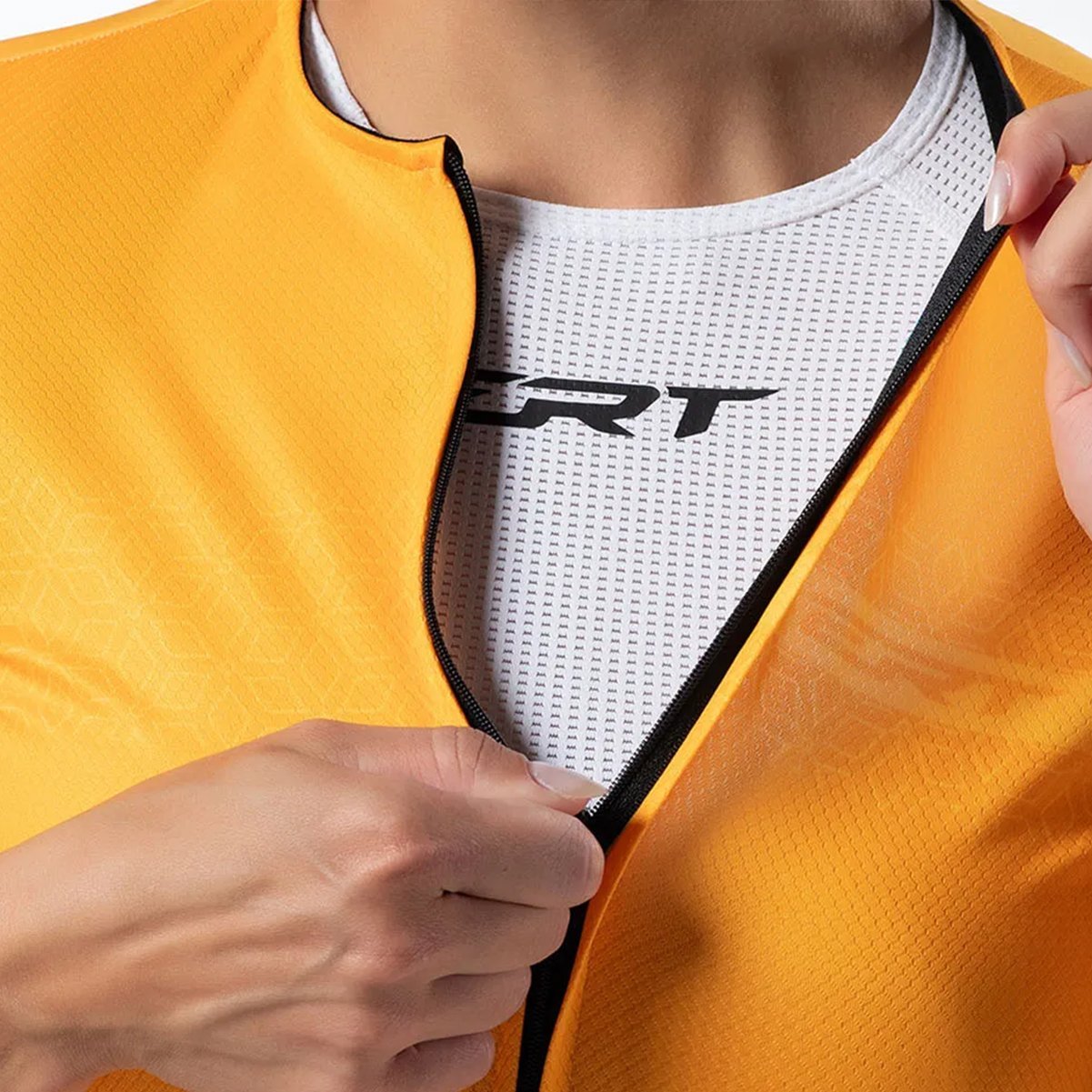 A modelagem específica para o corpo feminino oferece um ajuste preciso e ergonômico, garantindo liberdade de movimento e minimizando o atrito durante o pedal. Além disso, possui costuras planas que reduzem o risco de irritações e proporcionam um contato suave com a pele. A parte frontal da camisa apresenta zíper de inteligente que permite uma ventilação personalizada, facilitando também a colocação e a remoção da peça. Os dois bolsos com zíper na parte de trás, oferecem espaço para armazenar pequenos itens essenciais, como chaves, dinheiro ou um lanche energético, enquanto a faixa de silicone na bainha traseira mantém a camisa no lugar, evitando que ela suba durante o pedal.