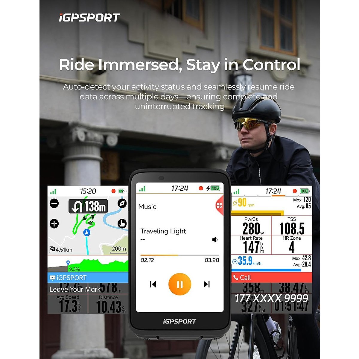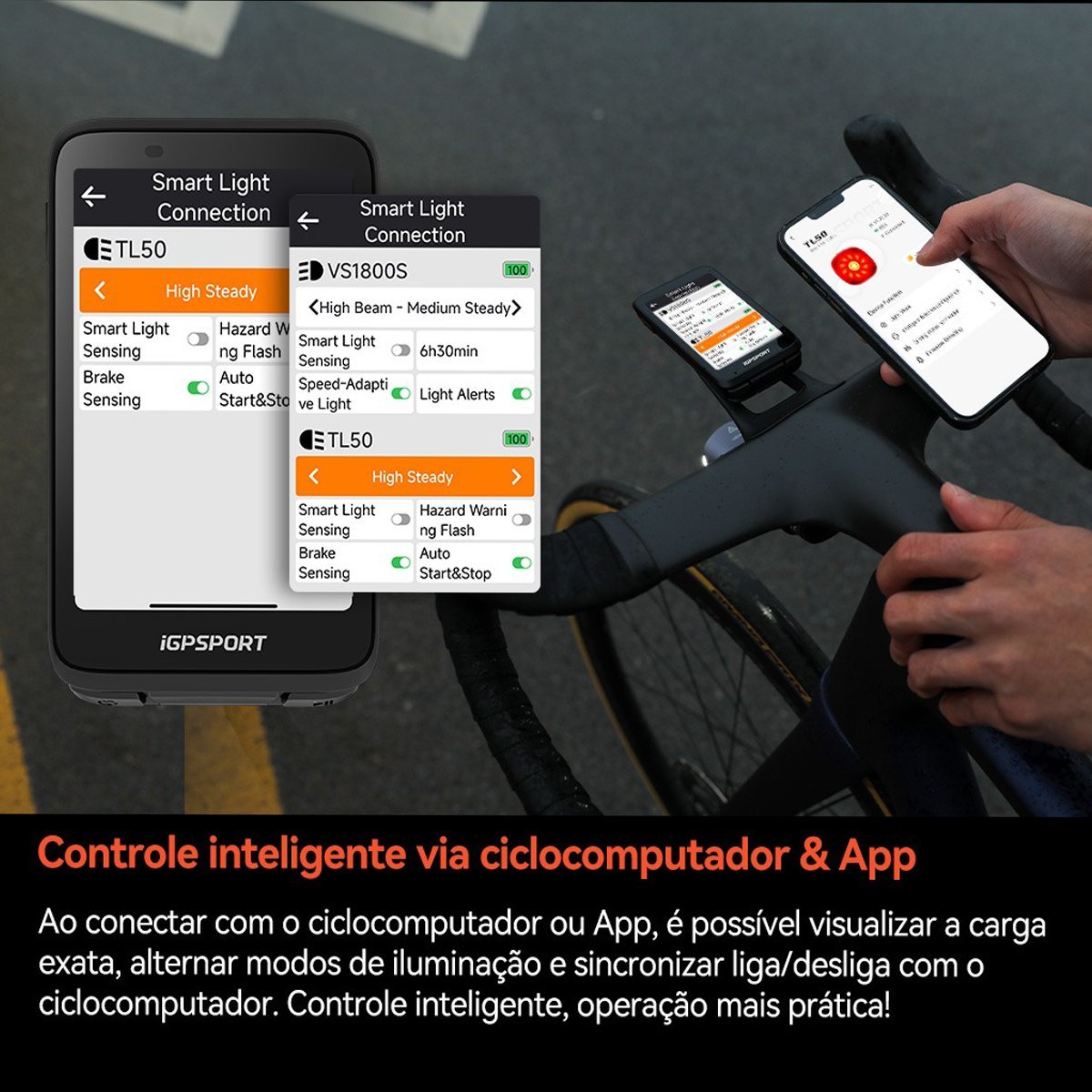 Equipado com funções inteligentes avançadas, o TL50 detecta automaticamente frenagens com um sensor de aceleração de alta precisão, aumentando a intensidade da luz de freio para alertar quem vem atrás, podendo esse brilho ser personalizado via app iGPSPORT. O produto permite ainda sincronização simples entre luz dianteira e traseira ao se aproximarem, alternância automática para modo de aviso em paradas temporárias e oferece múltiplos modos de iluminação (alta, baixa, piscante diurno, piscante noturno, modo roda radiante e personalizado). A bateria tem autonomia de 4–26 h, a luz é à prova d’água com classificação IPX7, carrega via porta USB-C e se conecta sem fios por BLE.