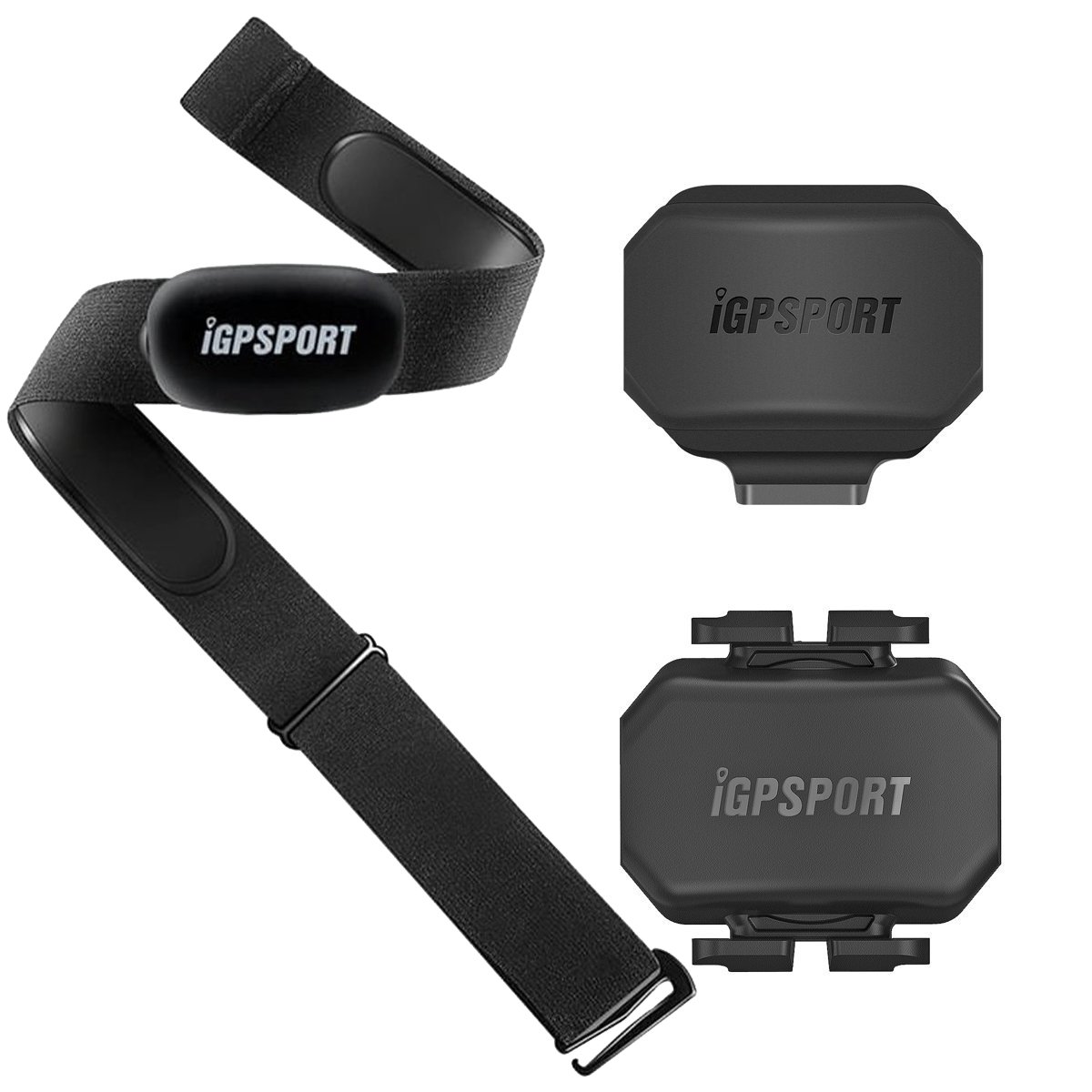 O kit de sensores iGPSPORT inclui uma cinta cardíaca, um sensor de velocidade e um sensor de cadência, projetados para fornecer dados precisos e em tempo real para ciclistas. Todos os dispositivos se conectam via protocolo ANT+ e Bluetooth, garantindo compatibilidade com a maioria dos ciclocomputadores e aplicativos de treino.