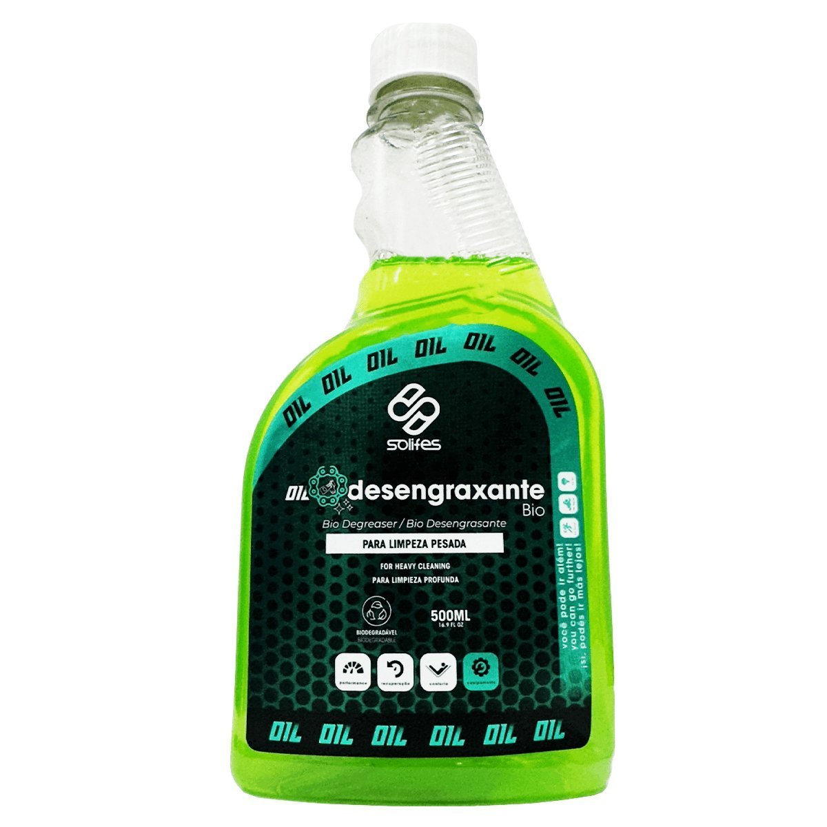 O desengraxante remove com facilidade a sujeira e a graxa do sistema de transmissão da bicicleta. Peças e equipamentos limpos garantem maior durabilidade e vida útil. Além de tudo isso, o Desengraxante Solifes Bio é feito a base de água, portanto é biodegradável, não oferece danos ao meio ambiente.