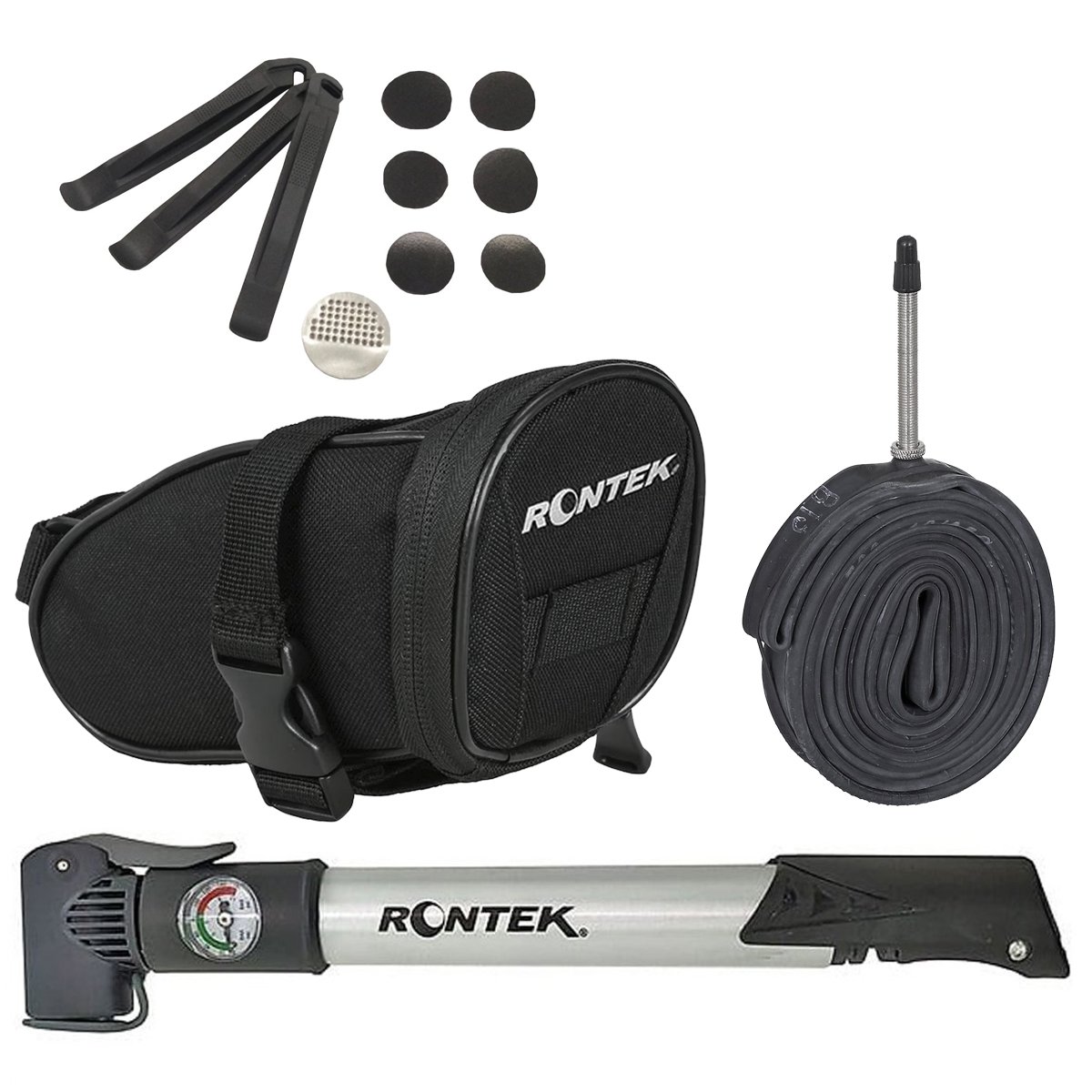 Bomba Ar de Bicicleta Rontek BBP-012 Mini Manômetro 160 PSICor: CINZA Tamanho: UBolsa Selim de Bicicleta Rontek AeroCor: PRETO Tamanho: UCâmara Ar de Bicicleta Arisun Speed 700x18/25c Presta 60mmCor: PRETO Tamanho: UKit Remendo Atrio Autoadesivo 6 unidades com 3 EspátulasCor: PRETO Tamanho: U - Garantia: 3 meses contra defeito de fabricação.