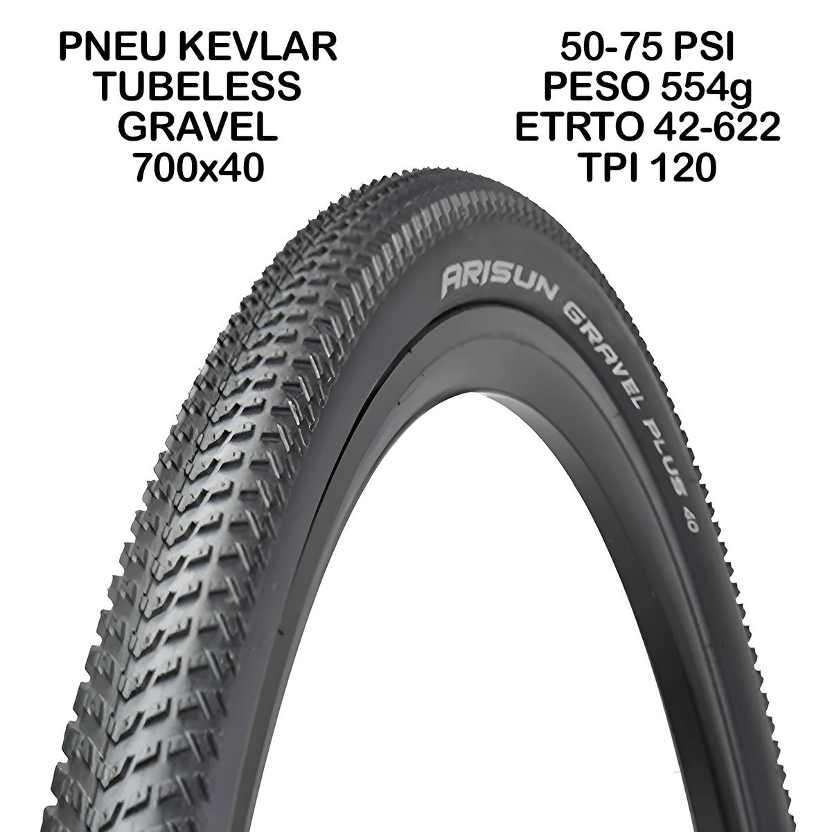 Pneu de Bicicleta Arisun Gravel Plus 700X40 Tubeless Quant: 2x - Garantia: 3 meses contra defeito de fabricação.
