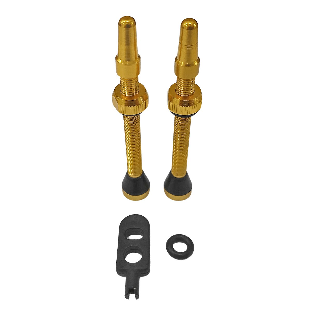 Construídas em alumínio de alta resistência as válvulas para tubeless Rontek apresentam excelente acabamento e a coloração dourada da um ar sofisticado e estiloso a sua bike. As válvulas possuem 60mm de comprimento cada uma e acompanham ainda o removedor de válvulas para auxiliar na instalação.