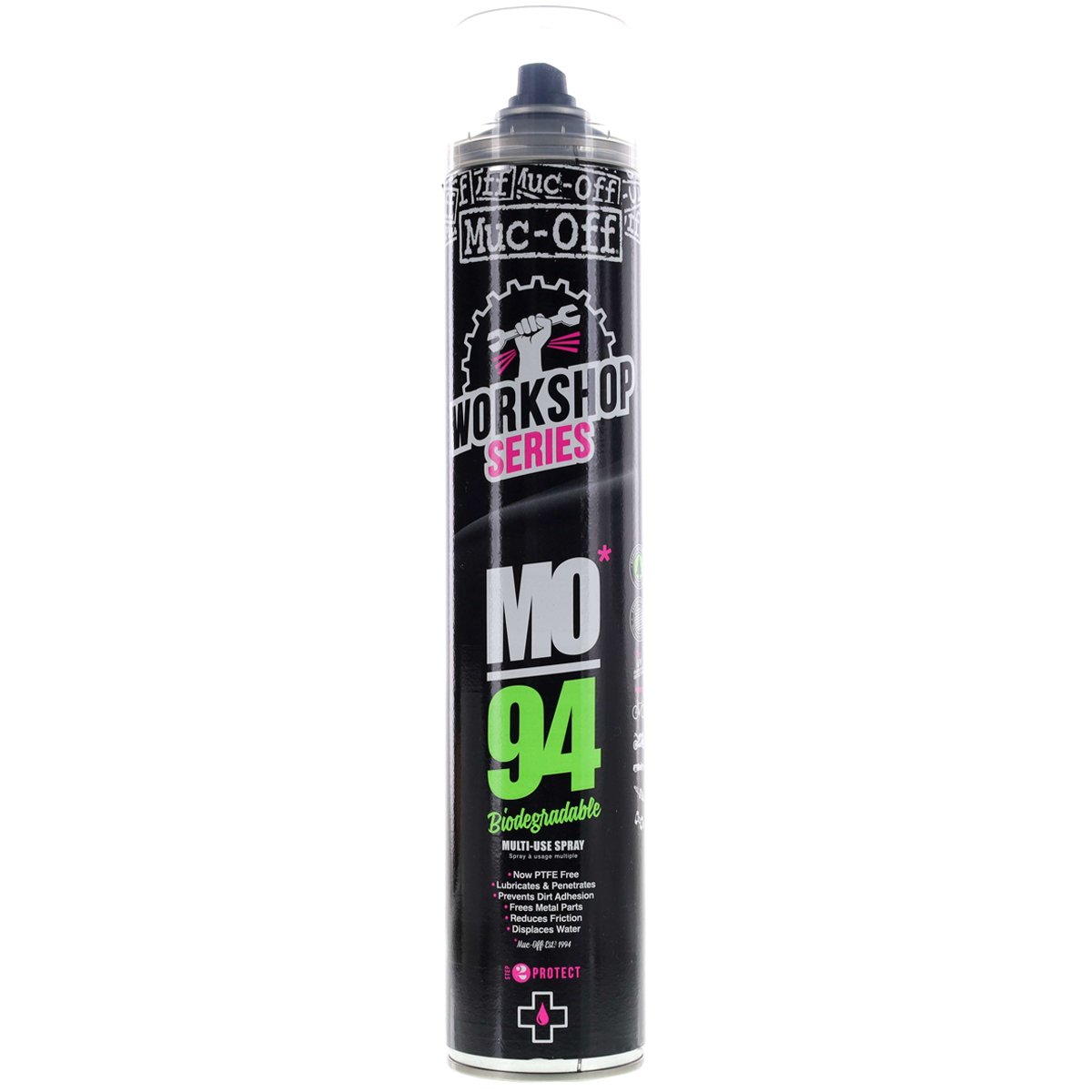 O Lubrificante de Bicicleta Muc-Off MO-94 Anticorrosivo 750ml apresenta propriedades que repele a umidade, bem como a água. A Muc-Off, desde a sua criação, é uma empresa fornecedora de produtos para cuidados das bicicletas e motos, tem seus produtos sendo utilizados por equipes do UCI World Tour de Ciclismo.
