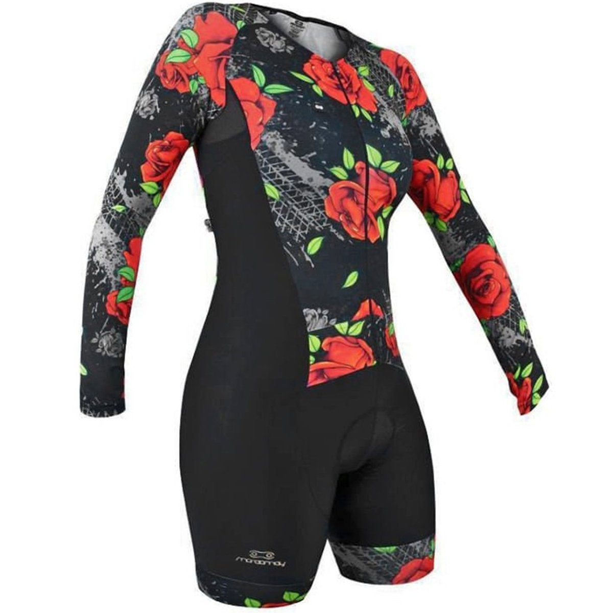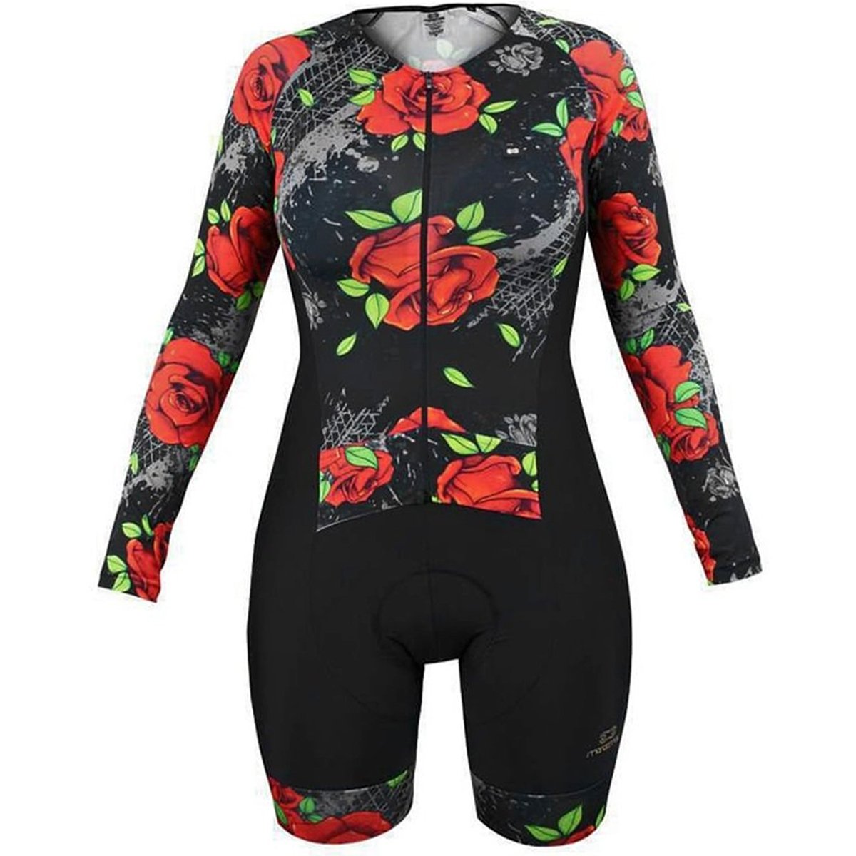 1 Macaquinho de Ciclismo Marcio May Red Roses Manga Longa Preto