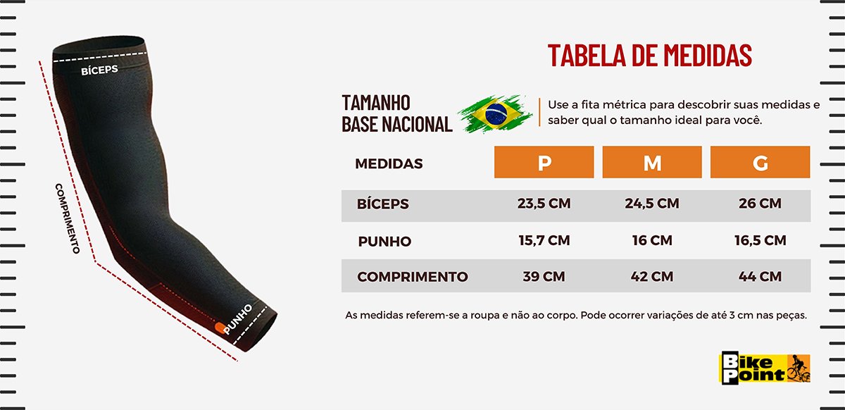 Tamanho / Bíceps / Punho / Comprimento