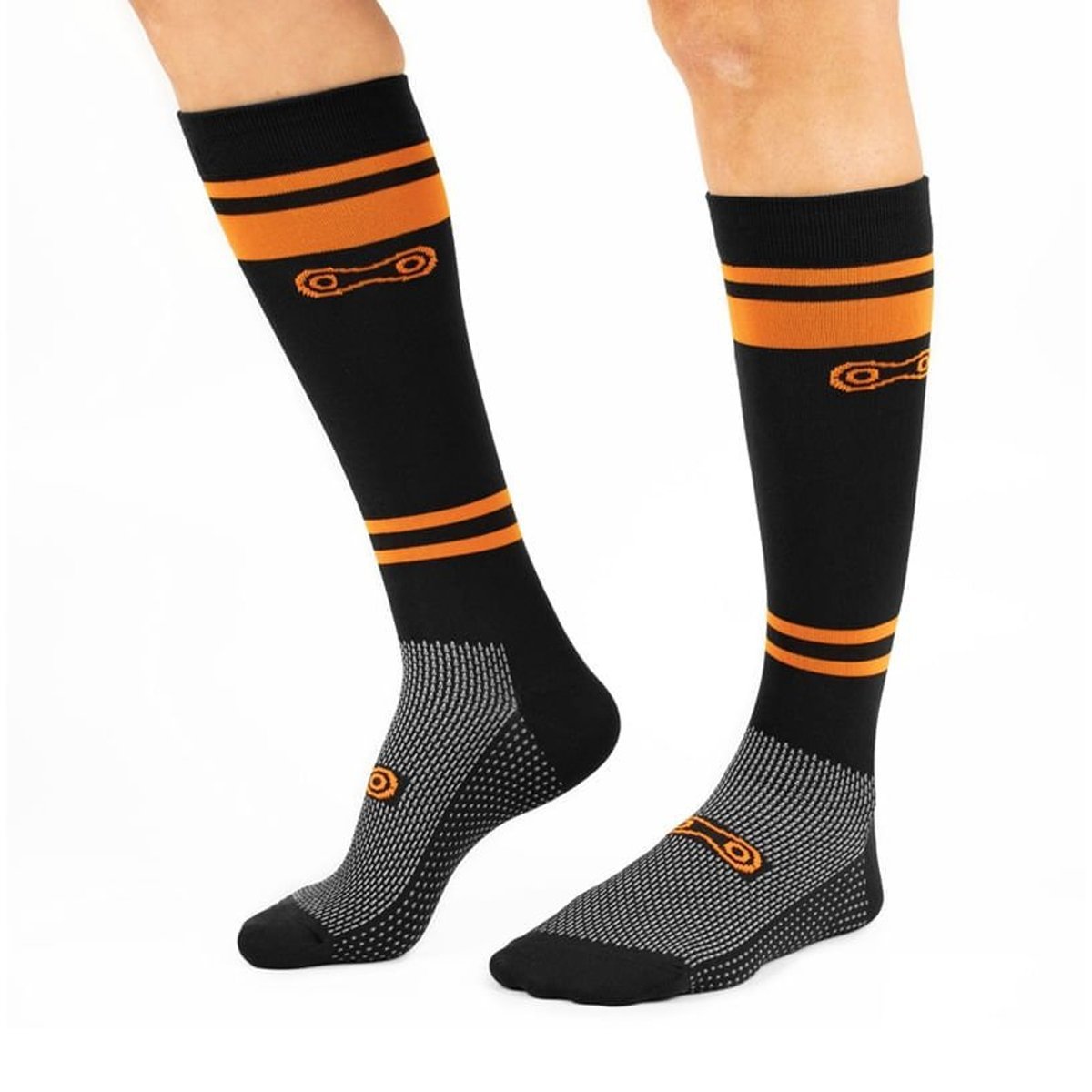 MEIA DE CICLISMO MARCIO MAY LONGA HIGH SCHOOL PRETA E LARANJA