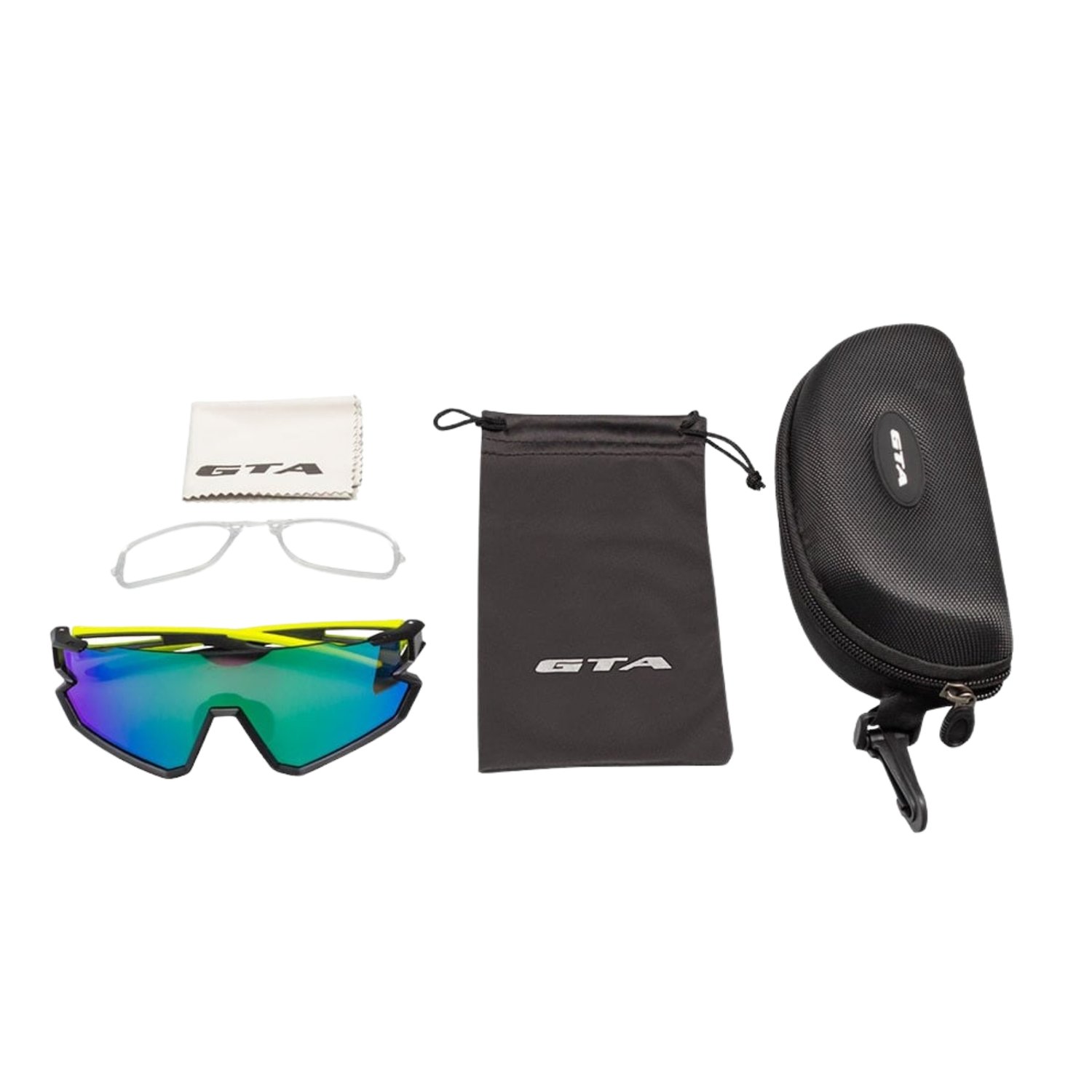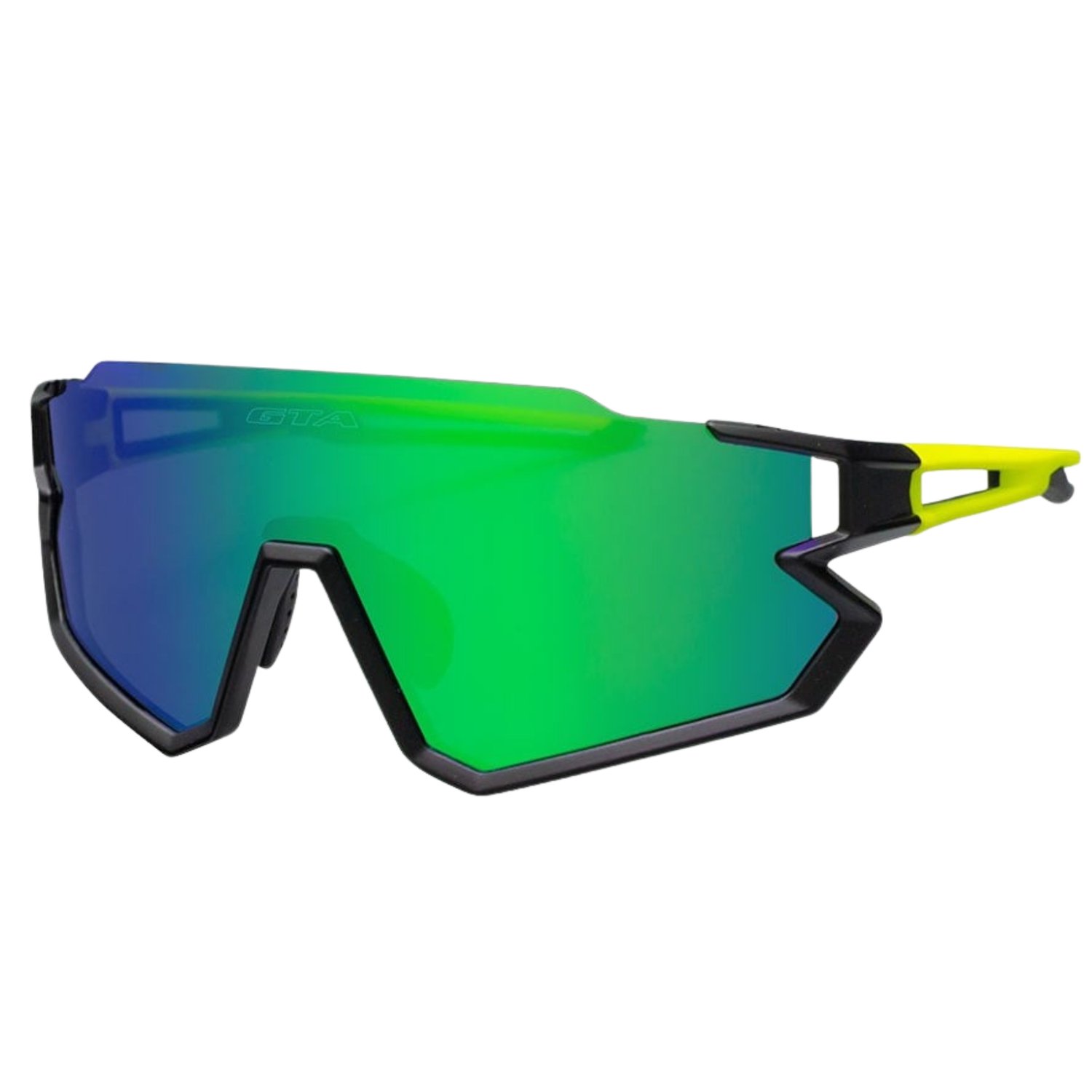 Óculos de ciclismo GTA Rox com lentes espelhadas em policarbonato, oferecendo proteção UV e alta resistência. Possui armação leve e flexível em termoplástico com narizeira e hastes emborrachadas para máximo conforto e estabilidade. Inclui um prático clip-on para lentes de grau, ideal para ciclistas que precisam de correção visual.