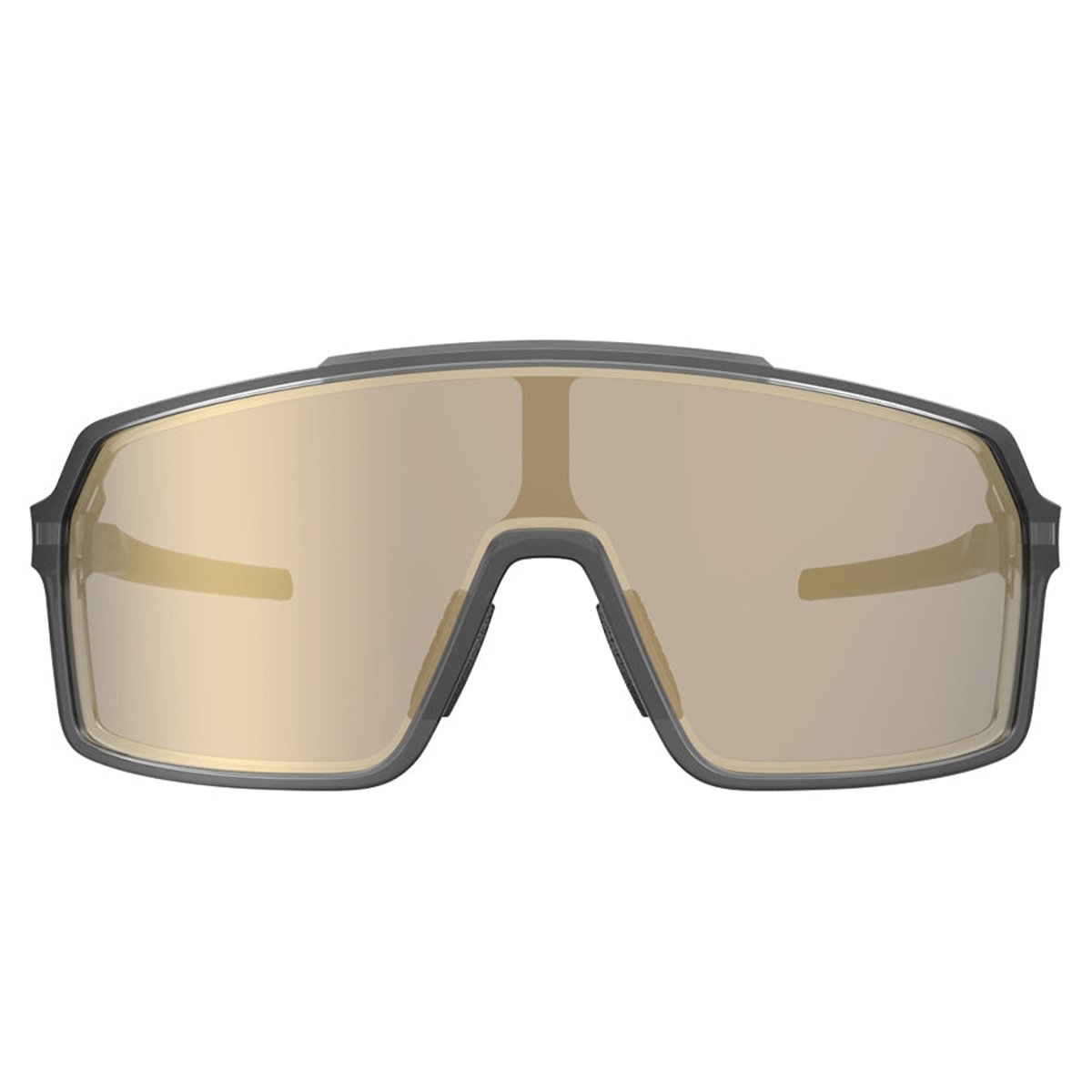 A armação em Polytech confere leveza, resistência e durabilidade excepcionais. O design robusto com acabamento em Dark Bluish Gray e as lentes Gold Chrome adicionam um toque premium e imponente ao modelo, destacando-o entre os óculos esportivos ciclismo.