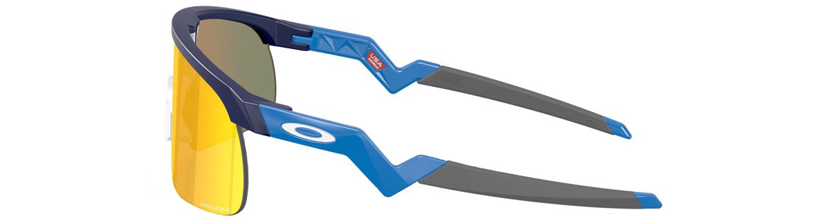 Equipados com lentes Prizm Ruby, que possuem transmissão de luz de 17%, indicadas para condições de alta luminosidade. Com base bronze e tonalidade escura, as lentes aumentam o contraste e realçam detalhes, proporcionando visão nítida e cores vibrantes. A tecnologia Prizm oferece proteção total contra raios UVA, UVB e UVC, garantindo a saúde ocular dos pequenos ciclistas.