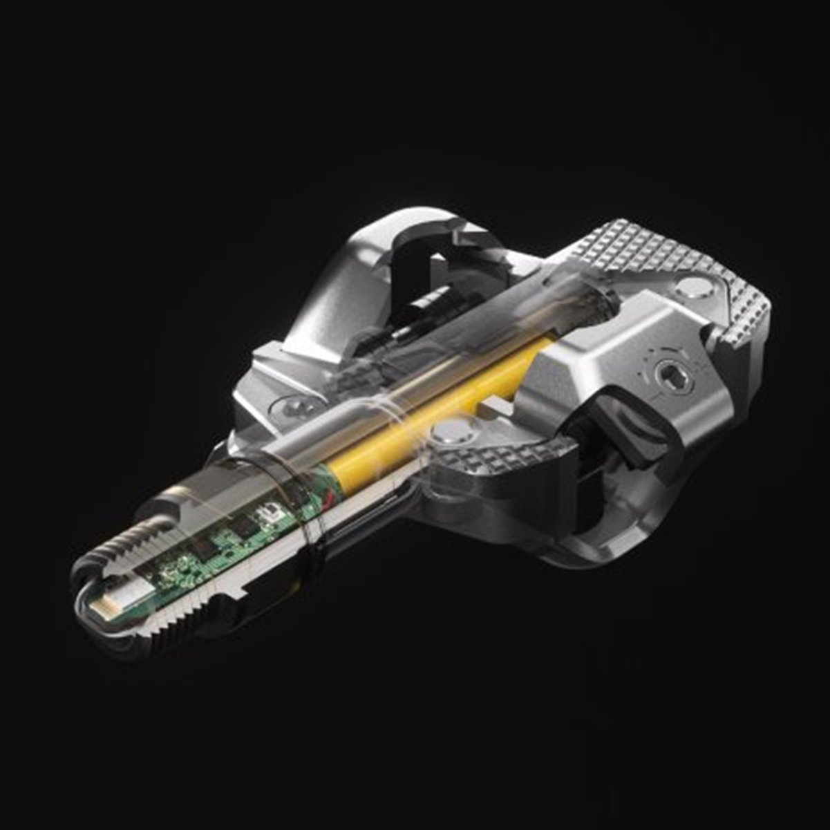 O pedal é equipado com componentes eletrônicos de última geração, integrados ao eixo do pedal. Graças à combinação de componentes eletrônicos inovadores, um algoritmo de autocalibração e compensação de temperatura patenteada, os dados de desempenho permanecem corretos e constantes, independentemente de mudanças de temperatura e altitude.