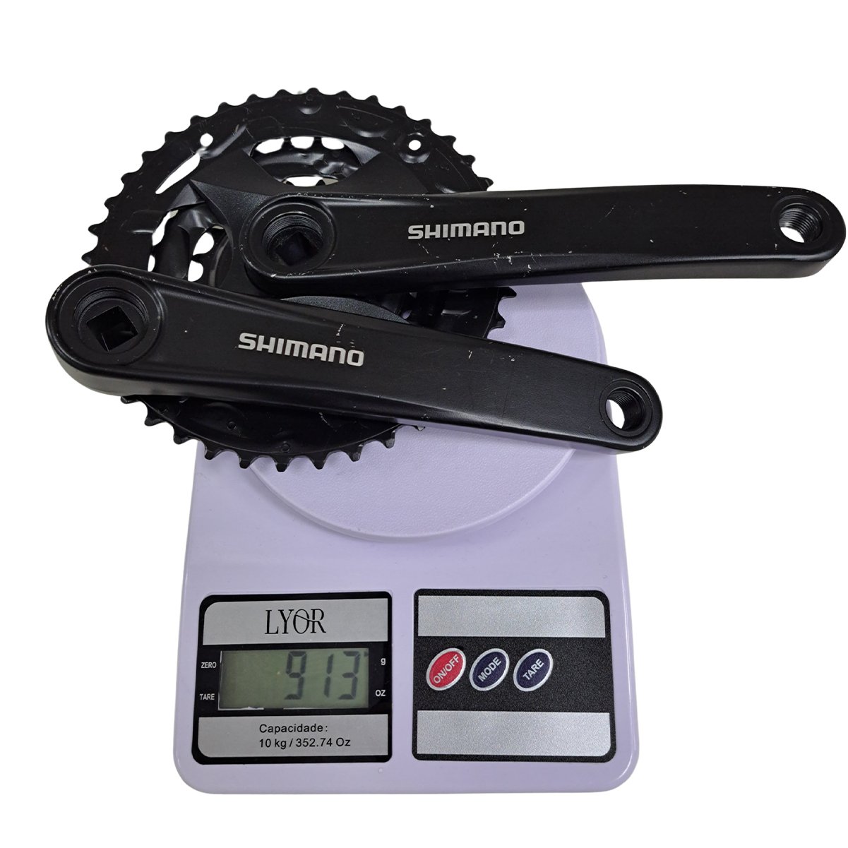 Material: Braços em alumínio forjado / Coroas em aço