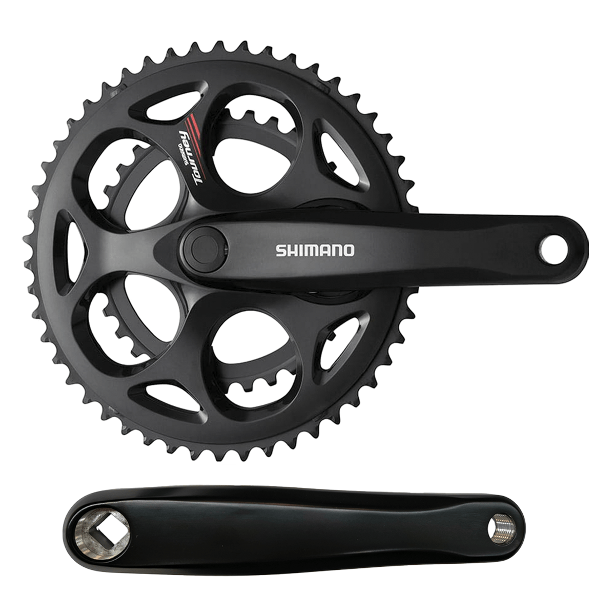 O FC-A070 utiliza fixação em eixo quadrado, padrão tradicional que facilita instalação e manutenção. Seu design compacto favorece cadência confortável e melhor aproveitamento da faixa de marchas em bikes de estrada recreativas e urbanas.