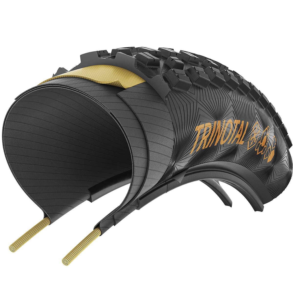 Projetado para solos compactos, terrenos mistos e condições úmidas, o Trinotal combina cravos centrais otimizados para velocidade com ombros reforçados que garantem estabilidade em curvas e segurança nas frenagens. Sua construção permite uso Tubeless Ready, possibilitando rodar com menor pressão para mais aderência, conforto e proteção contra furos.