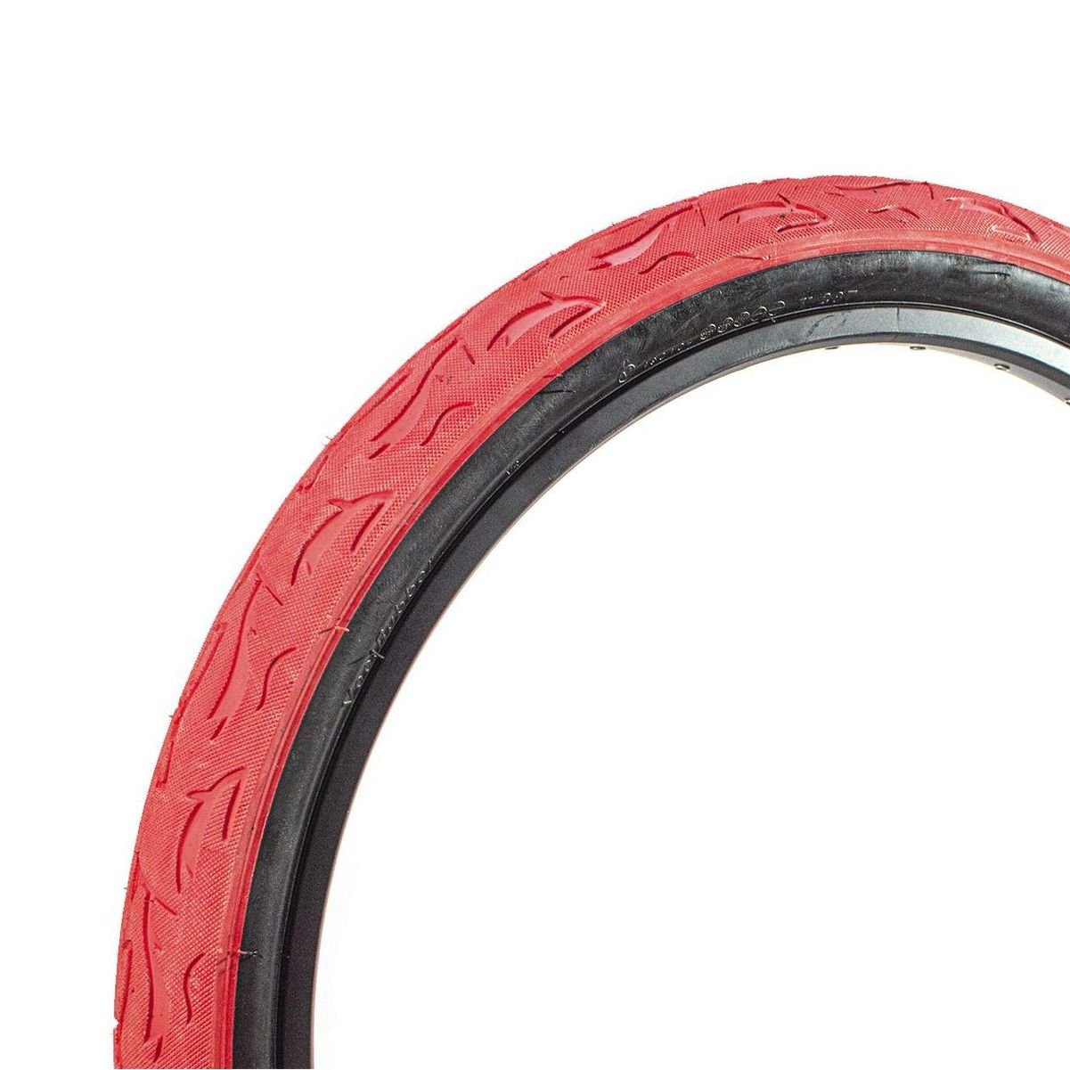 Pneu Vee Rubber Flame 26x2.5 Vermelho, ideal para uso urbano, oferece alta aderência, baixa resistência ao rolamento e durabilidade. Com construção robusta de 22 TPI e design atraente, garante pedaladas seguras e confortáveis em vias pavimentadas.
