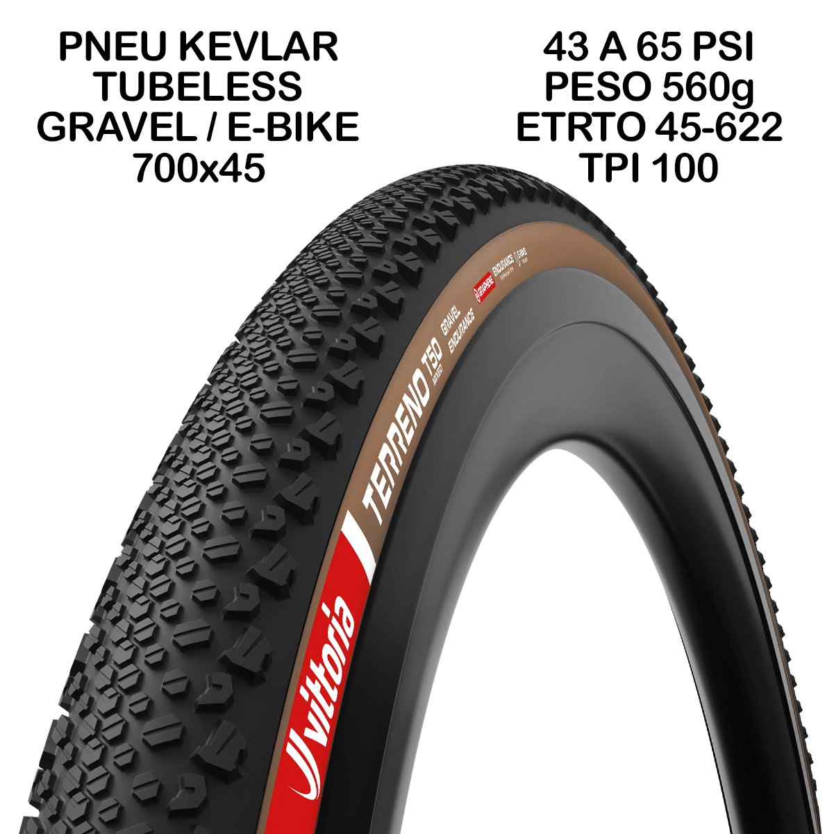 1 unidade - Pneu Vittoria Terreno T50 Mixed Gravel 700x45c