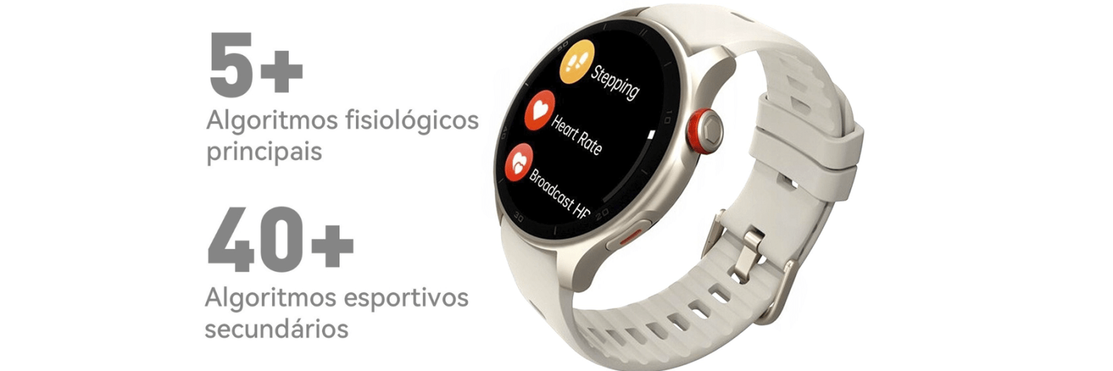 Funções: Notificações inteligentes, chamadas Bluetooth, monitoramento esportivo, rastreamento GPS, controle de música, cronômetro e alarmes