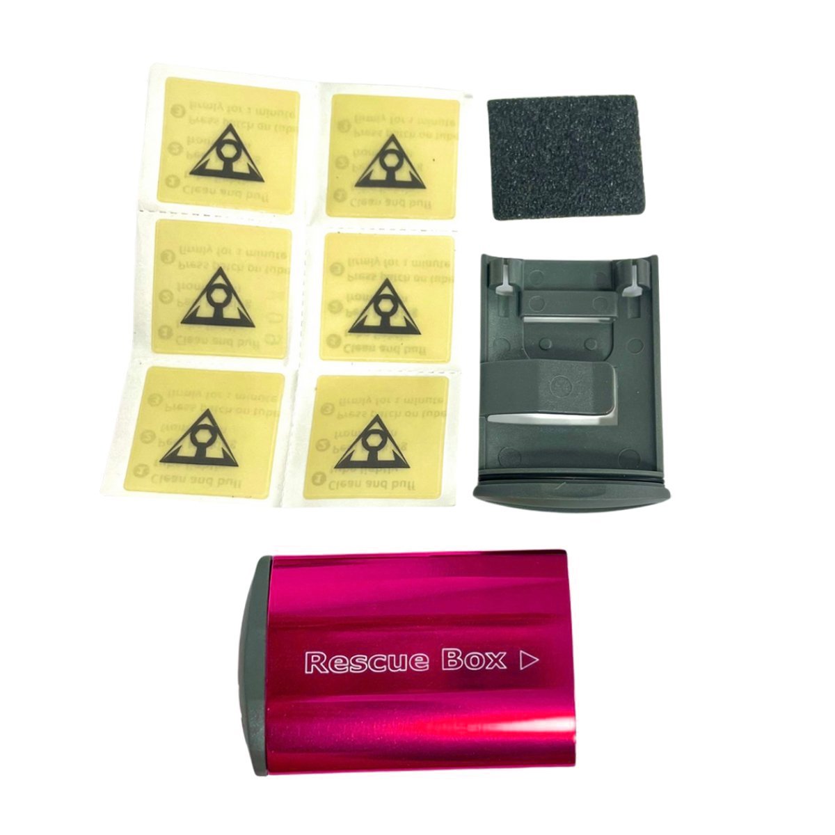 O Remendo Topeak Rescue Box Rosa é um kit de reparo de pneus de bicicleta, projetado para ser compacto e funcional. Este produto inclui seis remendos autocolantes, que permitem reparos rápidos e sem a necessidade de cola adicional. Junto, há uma lixa metálica que facilita a preparação da superfície do pneu para a aplicação dos remendos.