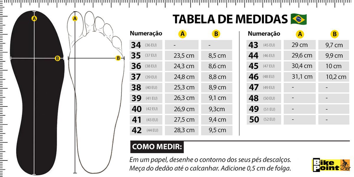 Reforço: Reforço dos dedos e do calcanhar para um suporte estrutural direcionado para evitar perder energia a cada pedalada além de suavizar o impacto de detritos a estrutura
